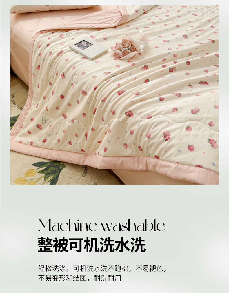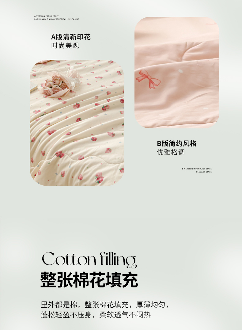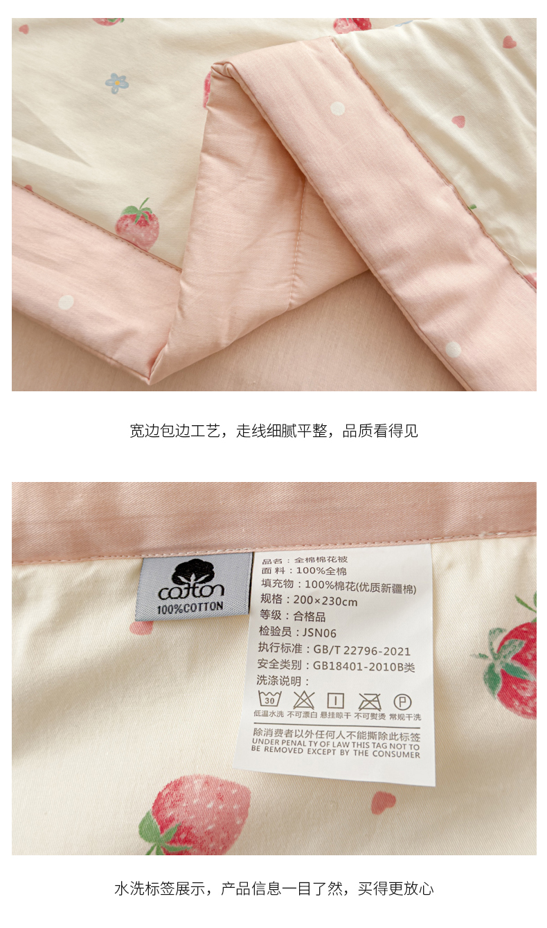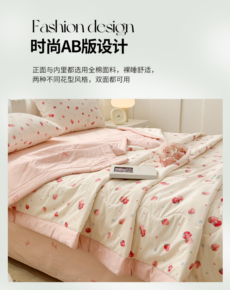 商品名称:金丝鸟家纺 2024新款全棉棉花夏被四件套 清新小草莓