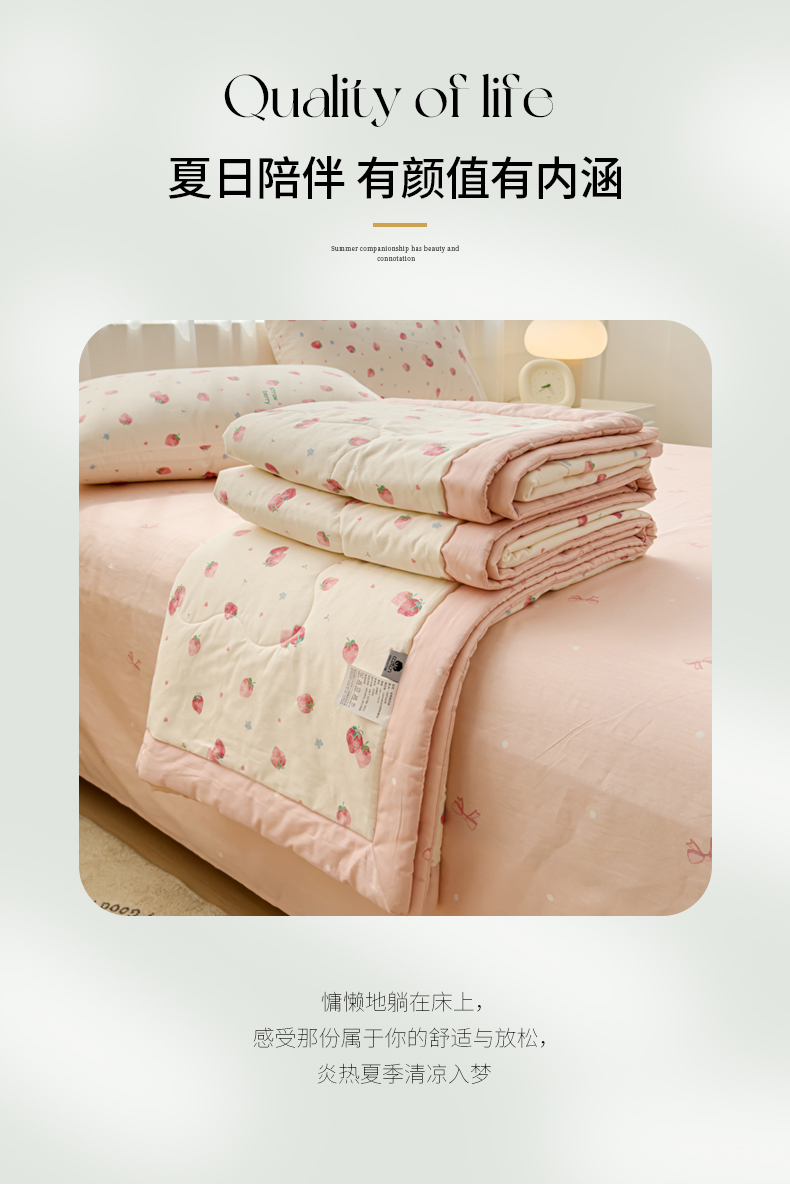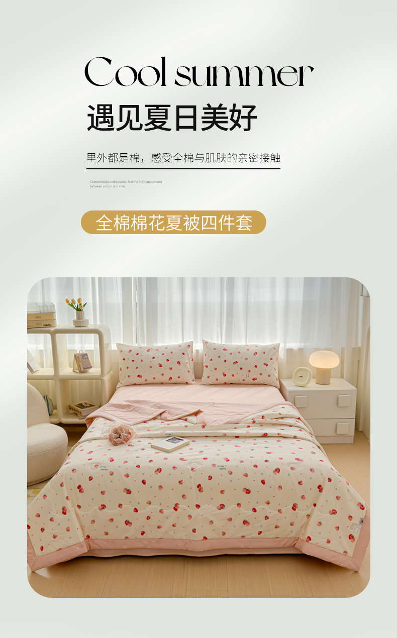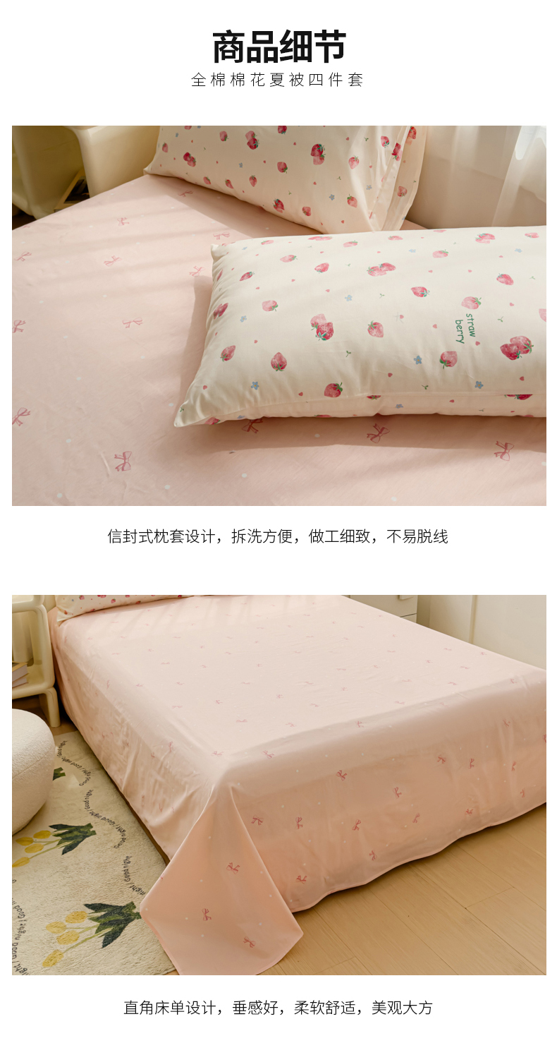 金丝鸟家纺 2024新款全棉棉花夏被四件套 清新小草莓