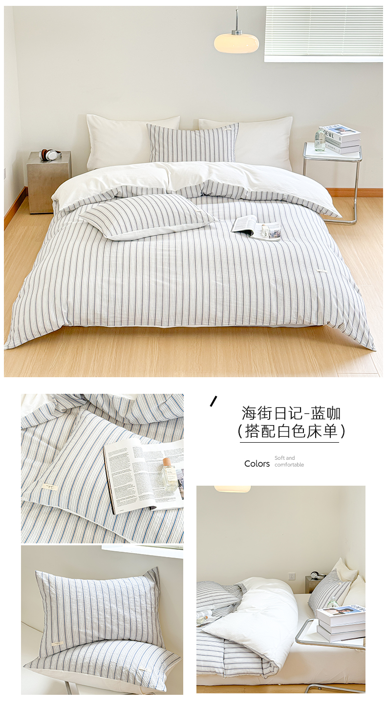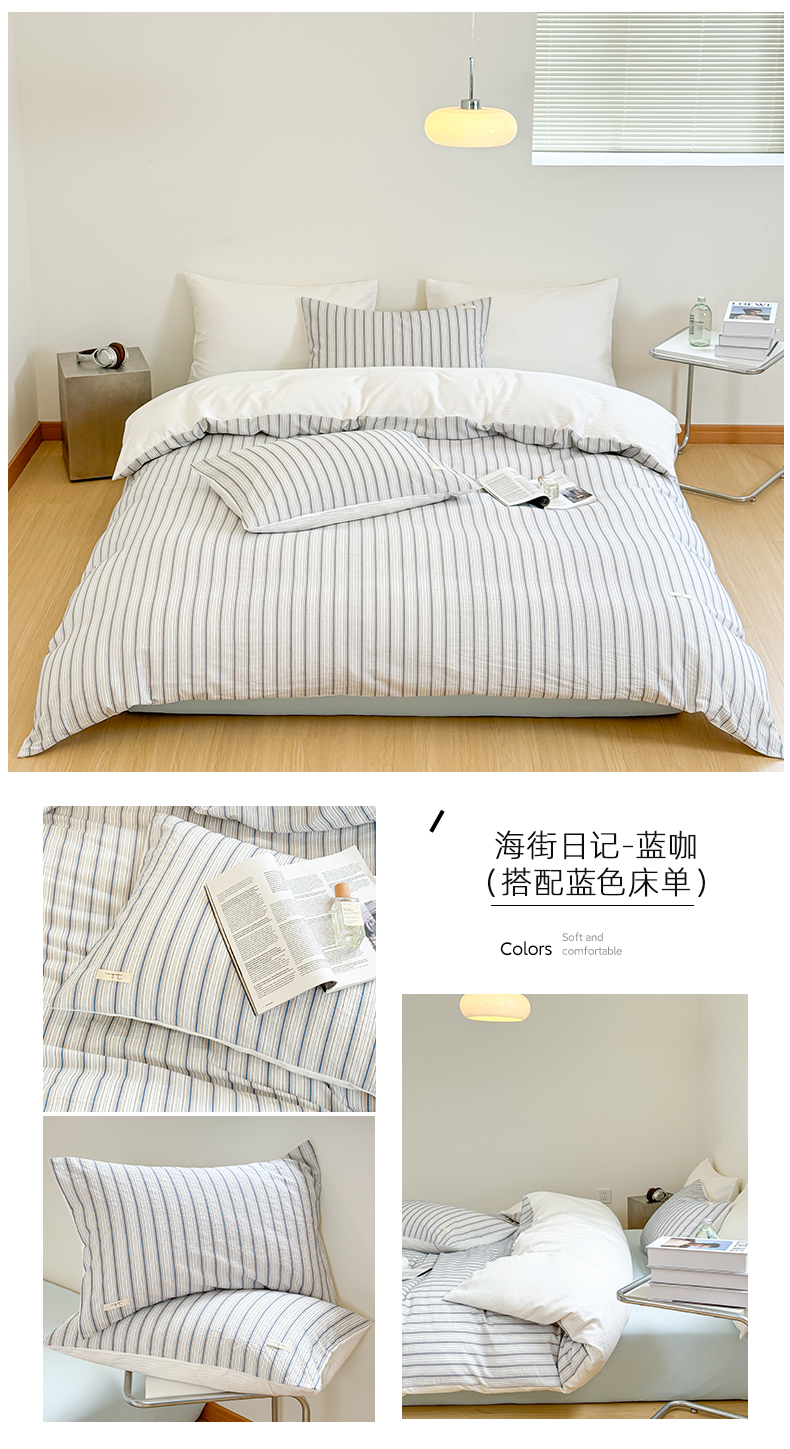 (总)玛奇朵 2025新款棉麻色织条纹系列四件套-雅典海岸,雅典海岸
