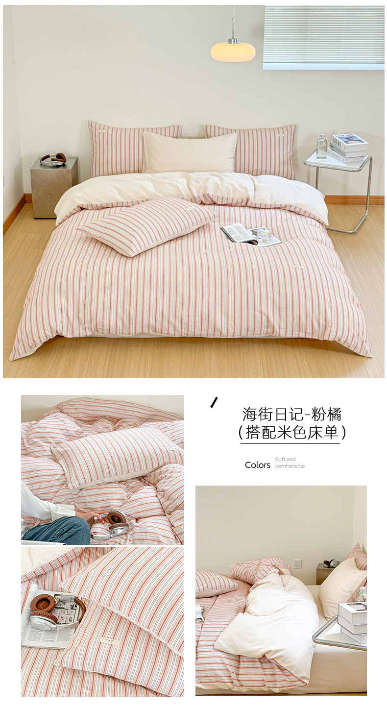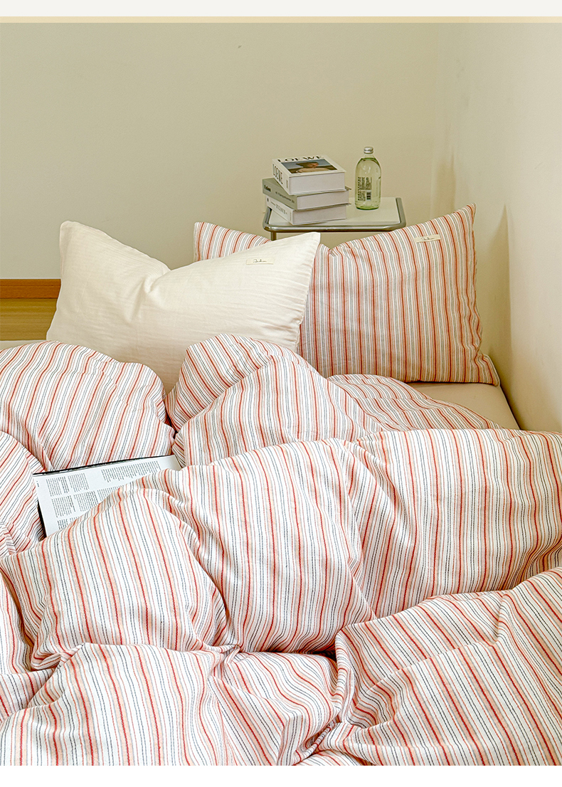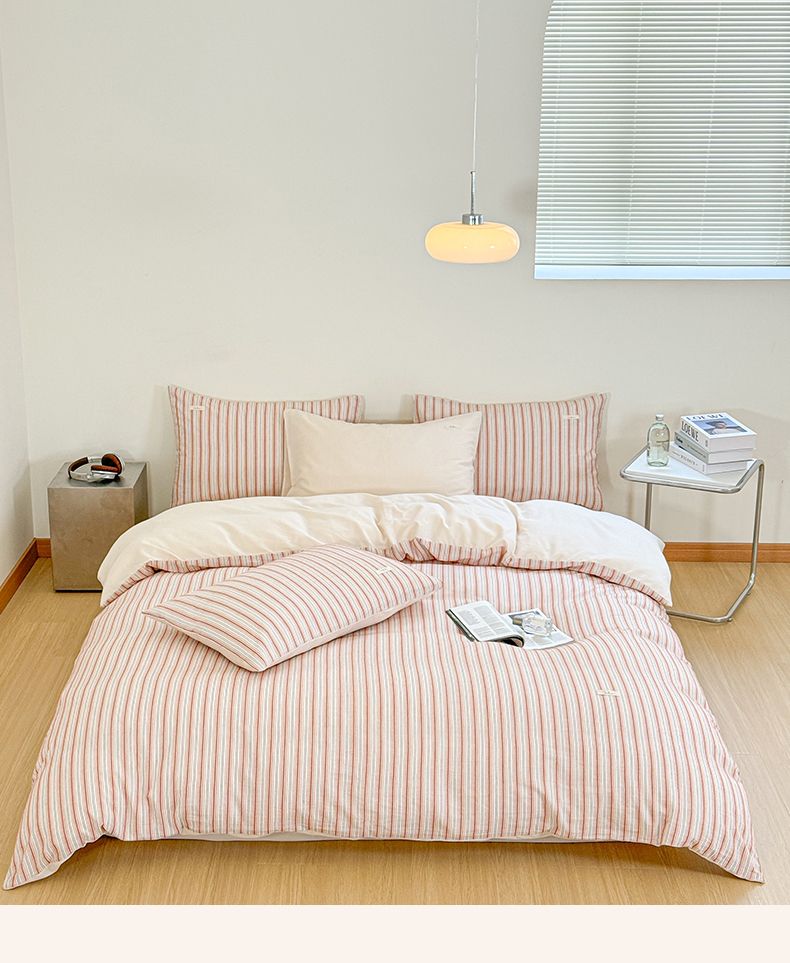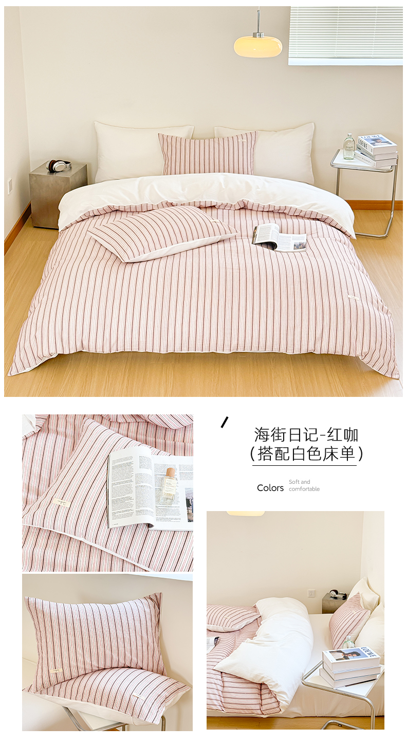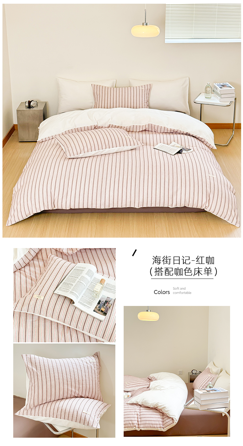 (总)玛奇朵 2025新款棉麻色织条纹系列四件套-南坪晚风,南坪晚风-粉色床单,南坪晚风-咖色床单