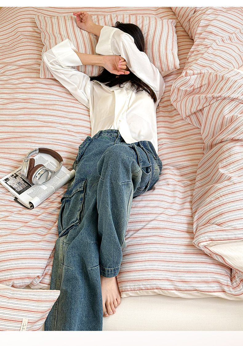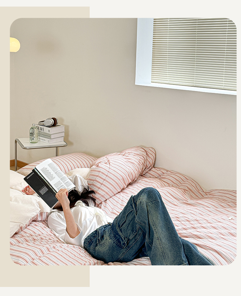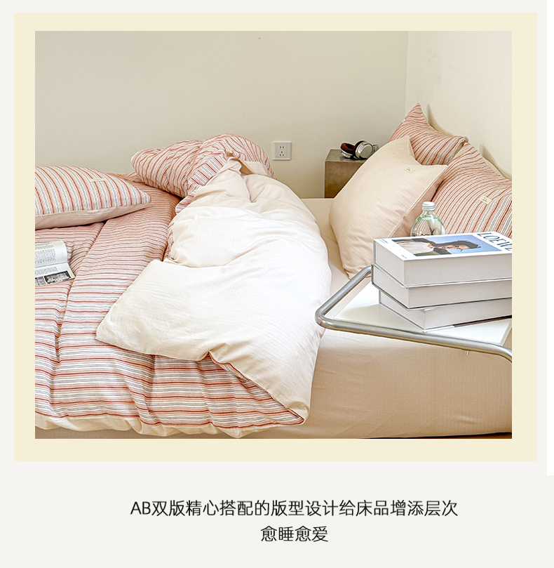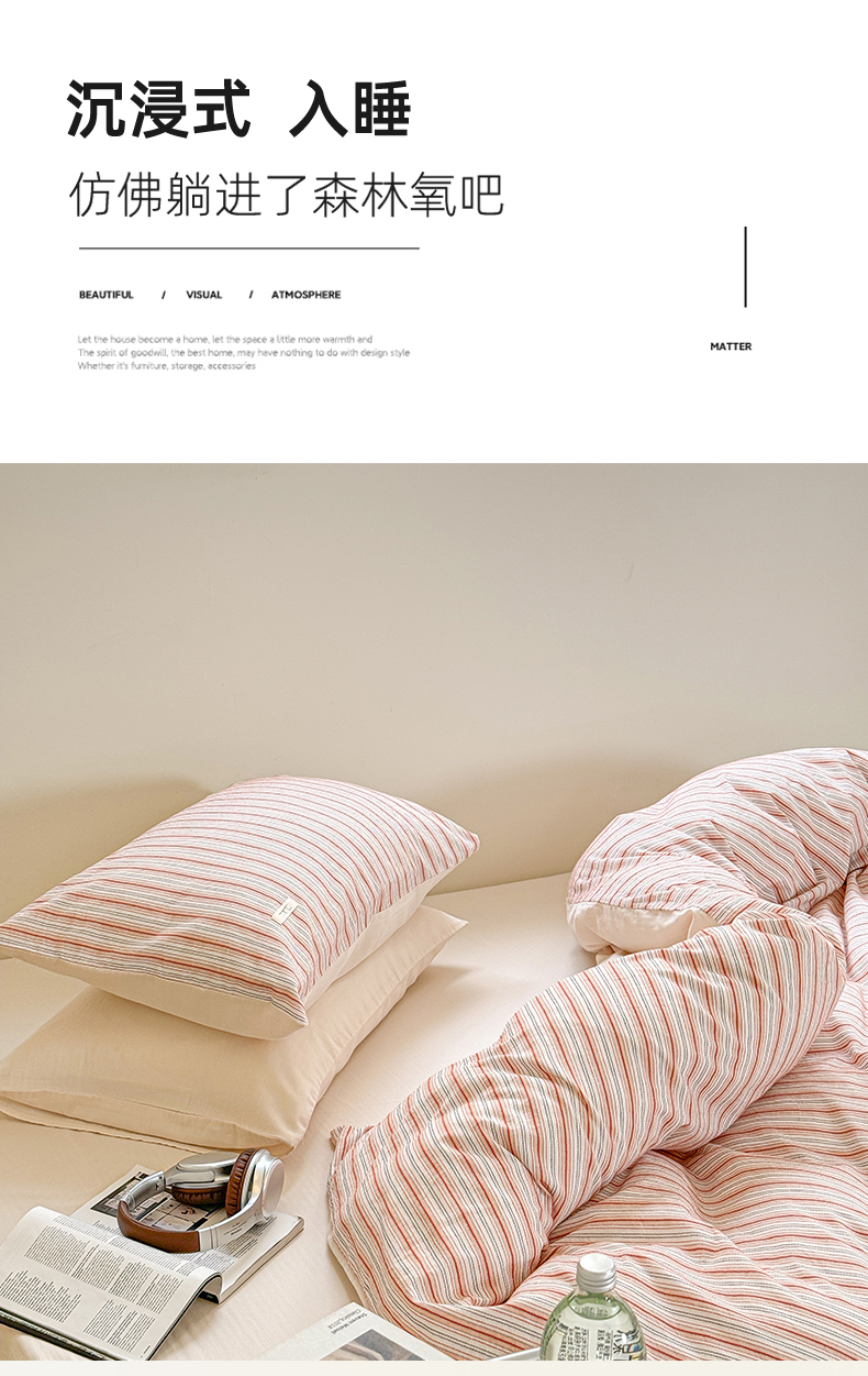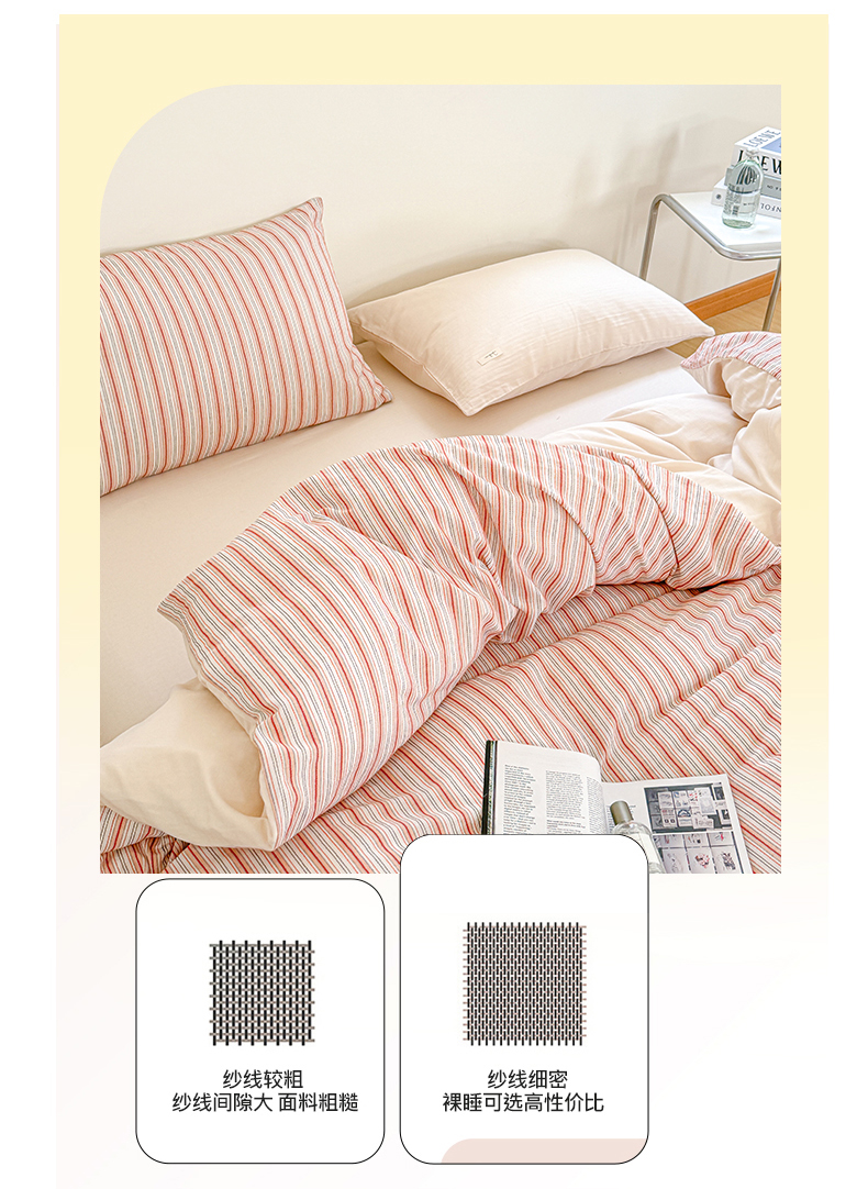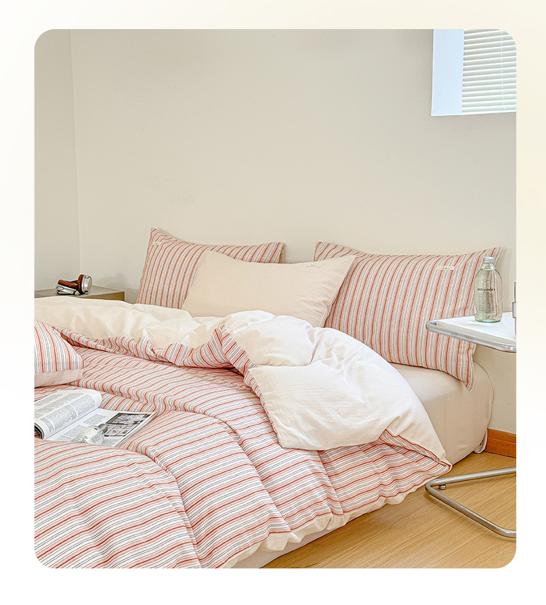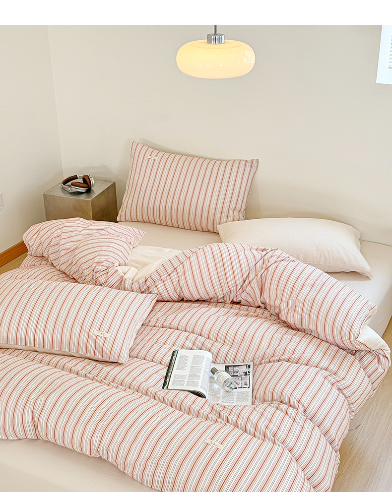 (总)玛奇朵 2025新款棉麻色织条纹系列四件套-南坪晚风,南坪晚风-粉色床单,南坪晚风-咖色床单