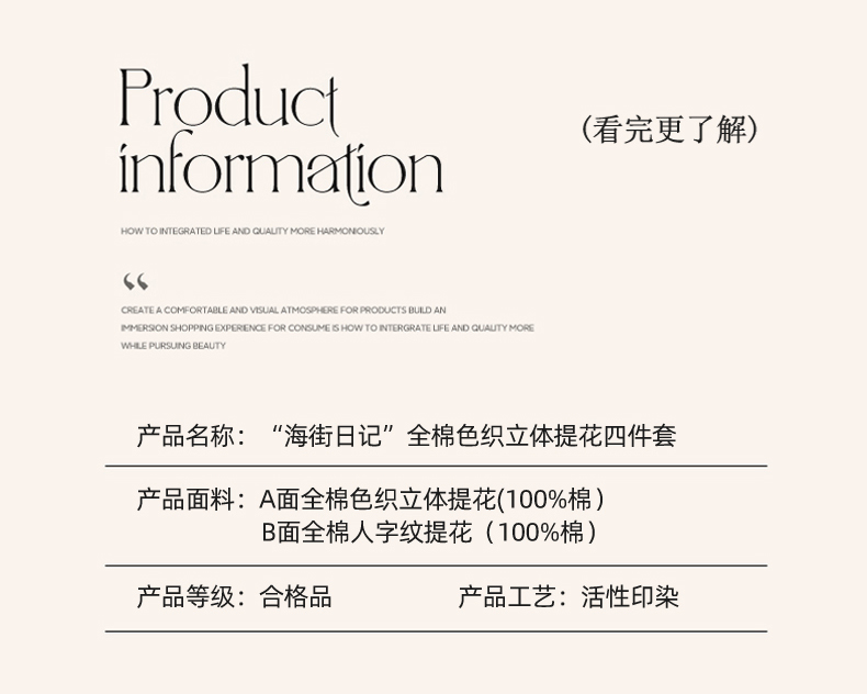商品名称:(总)玛奇朵 新款全棉色织立体提花四件套-海街日记