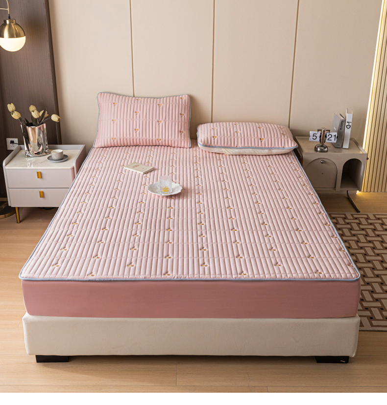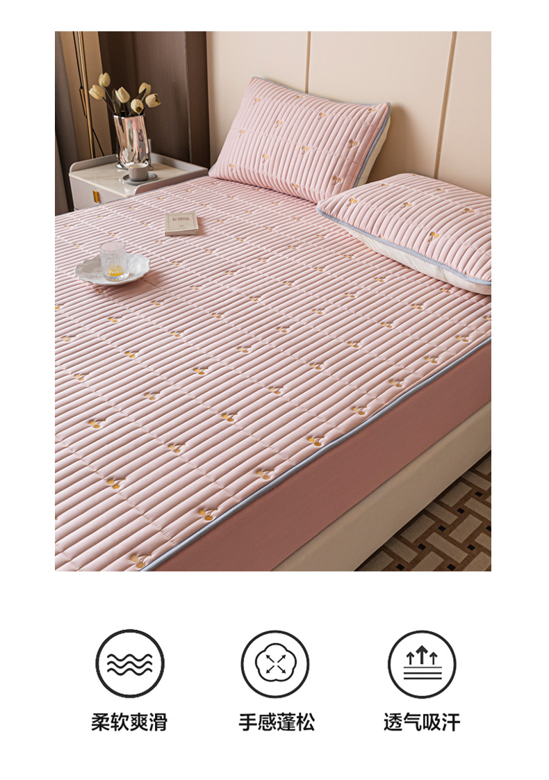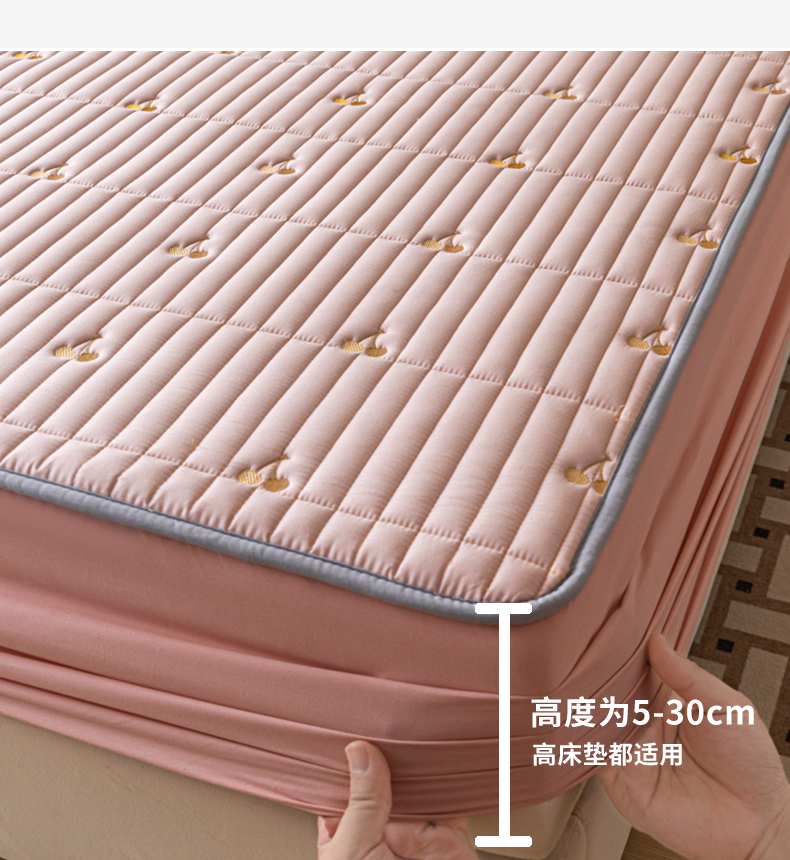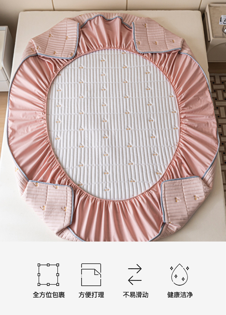 • 91家纺网 家纺一手货源 找家纺 暖季家纺 2025新款磨毛刺绣款床笠 小樱桃-粉