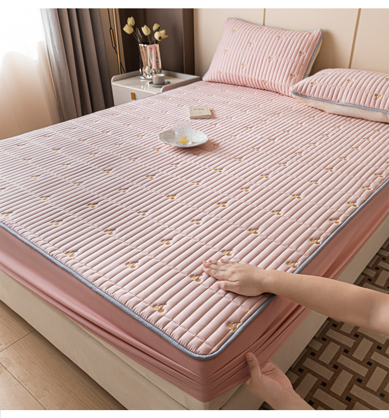 暖季家纺 2025新款磨毛刺绣款床笠 小樱桃-粉