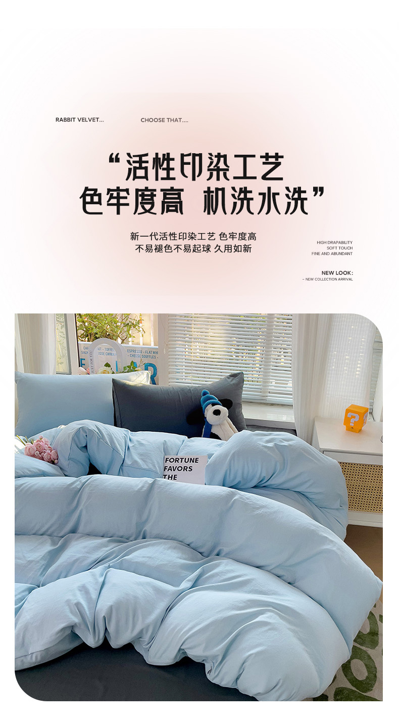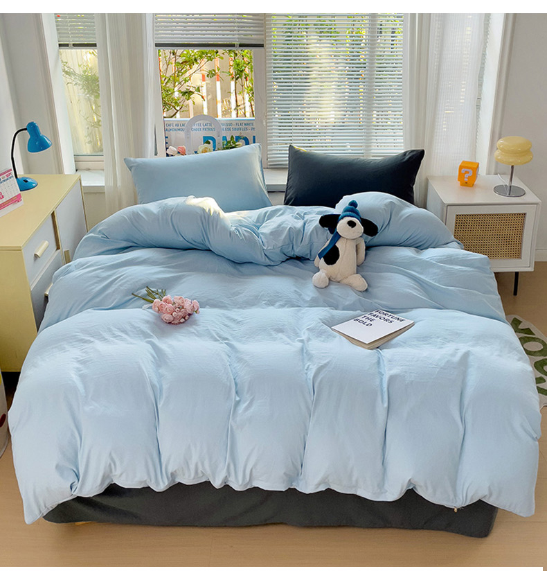当前位置: 91家纺网 > 商品网购 > 床品套件 > 四件套 > 水洗棉四件套 > 艾特你 2024新款A类ins风水洗棉四件套纯色四件套混搭素色四件套 混搭-浅蓝深灰
