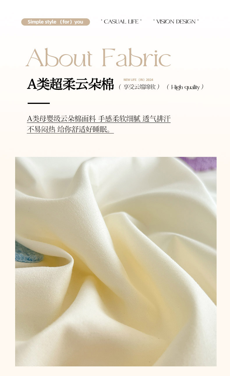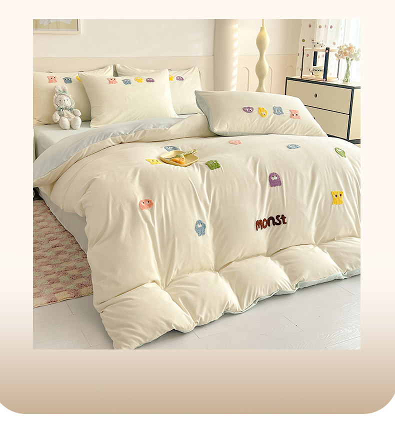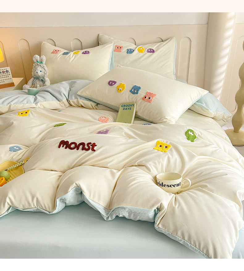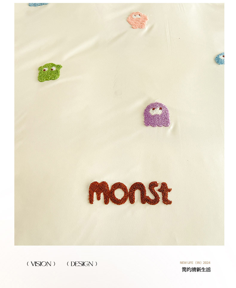 商品名称:2024新款超柔云朵棉毛巾绣四件套 小怪兽-奶白天空蓝