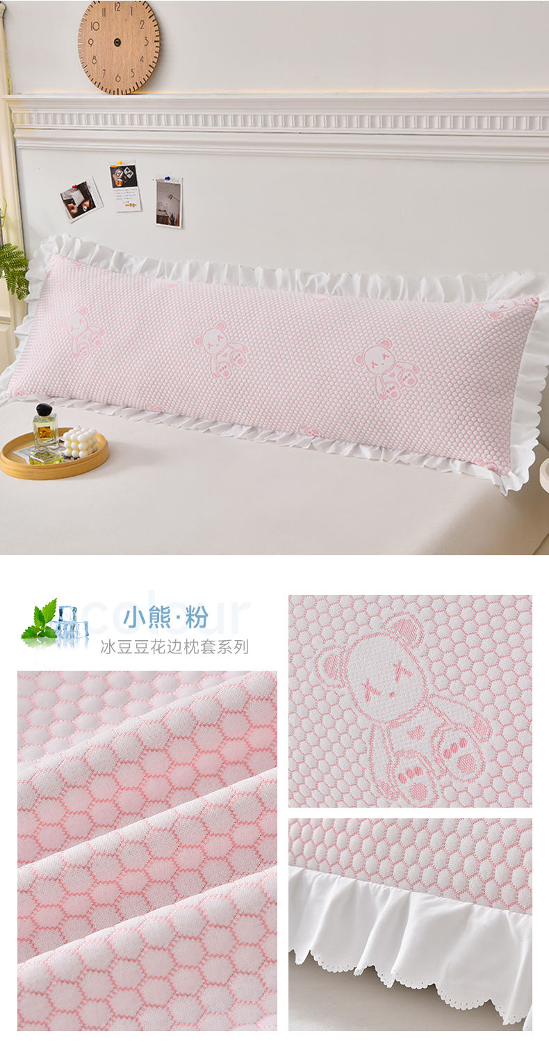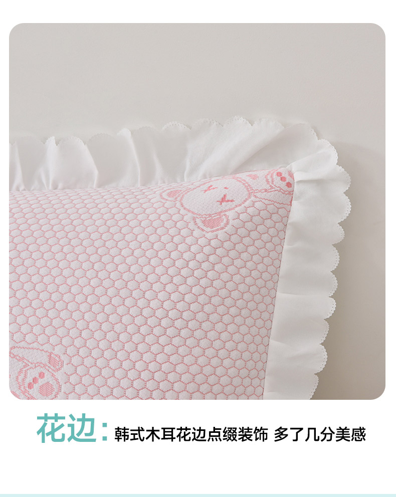 商品名称:艾兜坊 2024新款针织冰豆豆花边枕套 小熊·粉