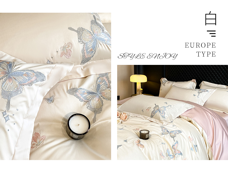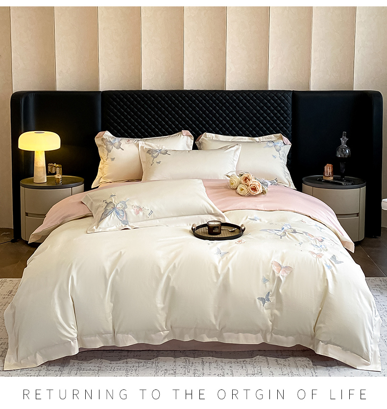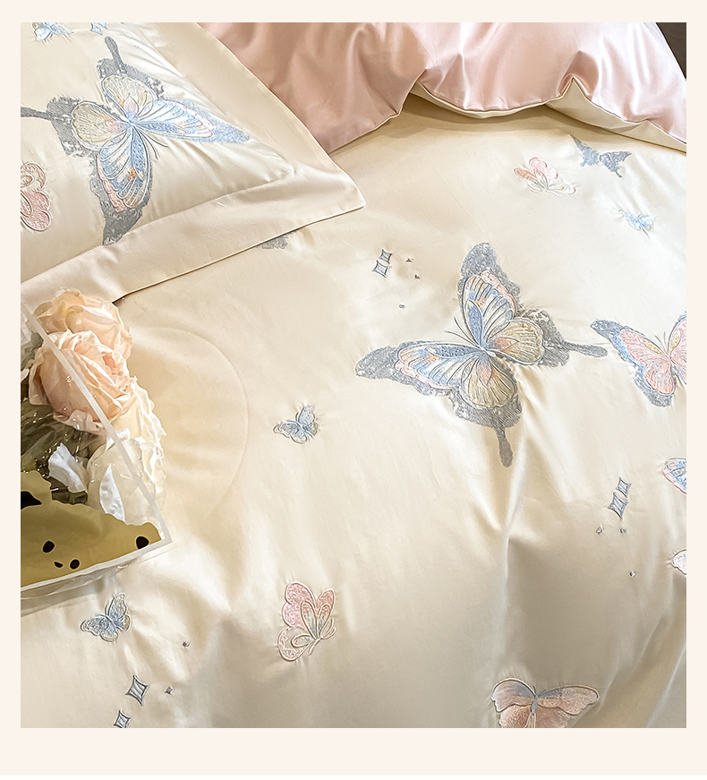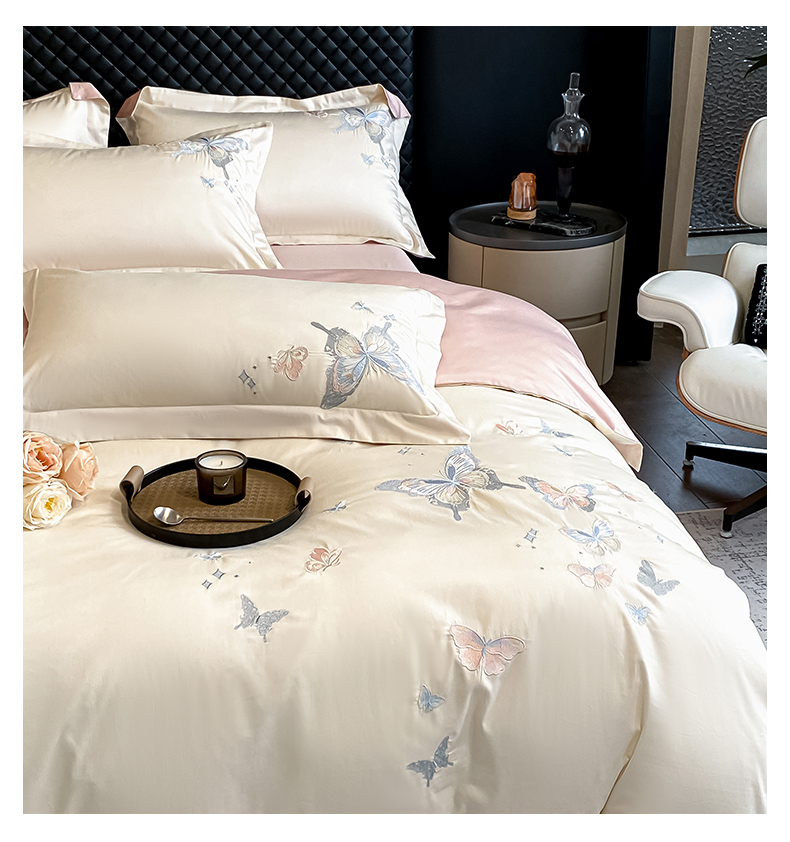 爱缦 2024新款80支新疆棉四件套梦幻蝶舞系列 白粉色