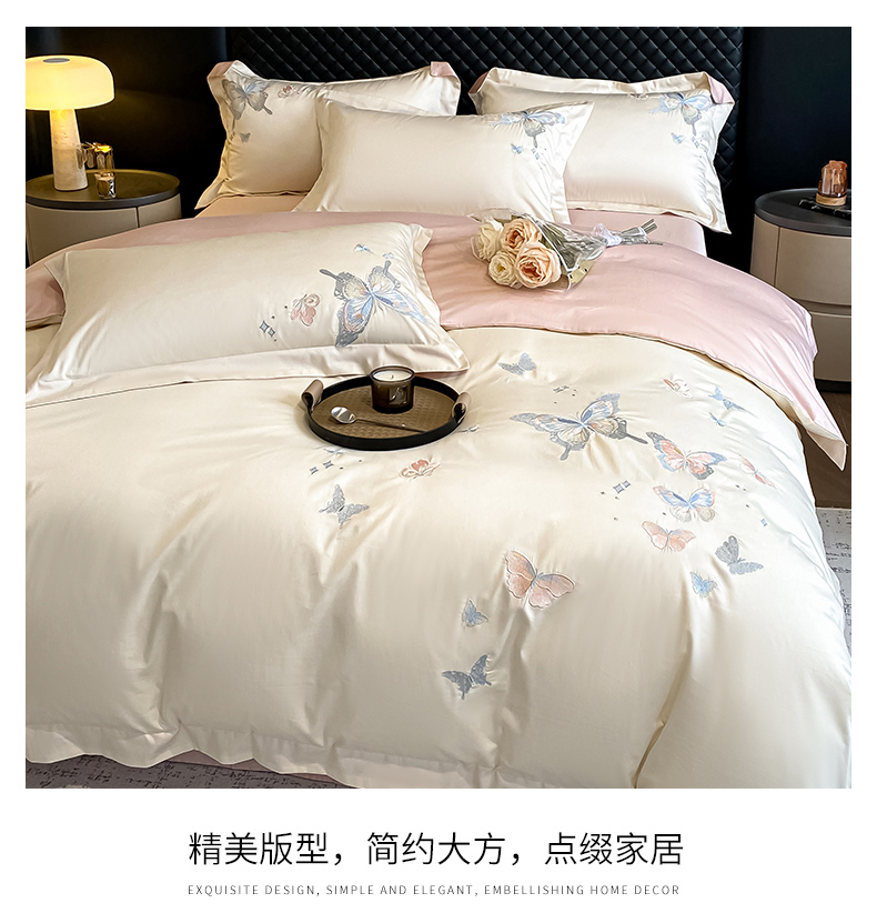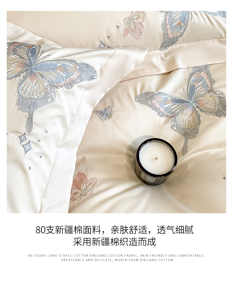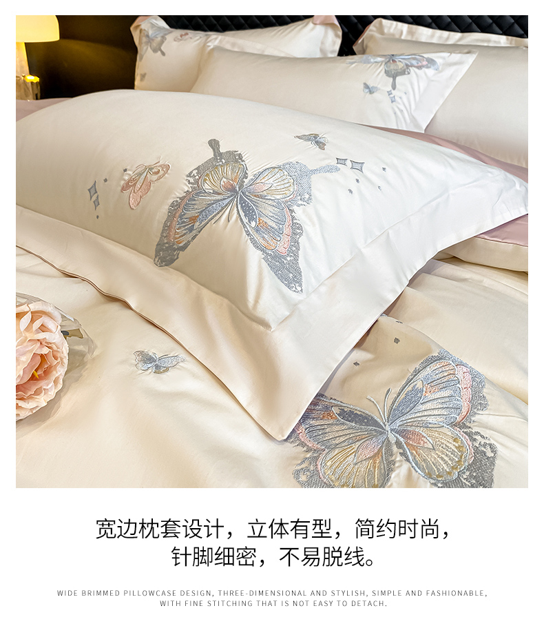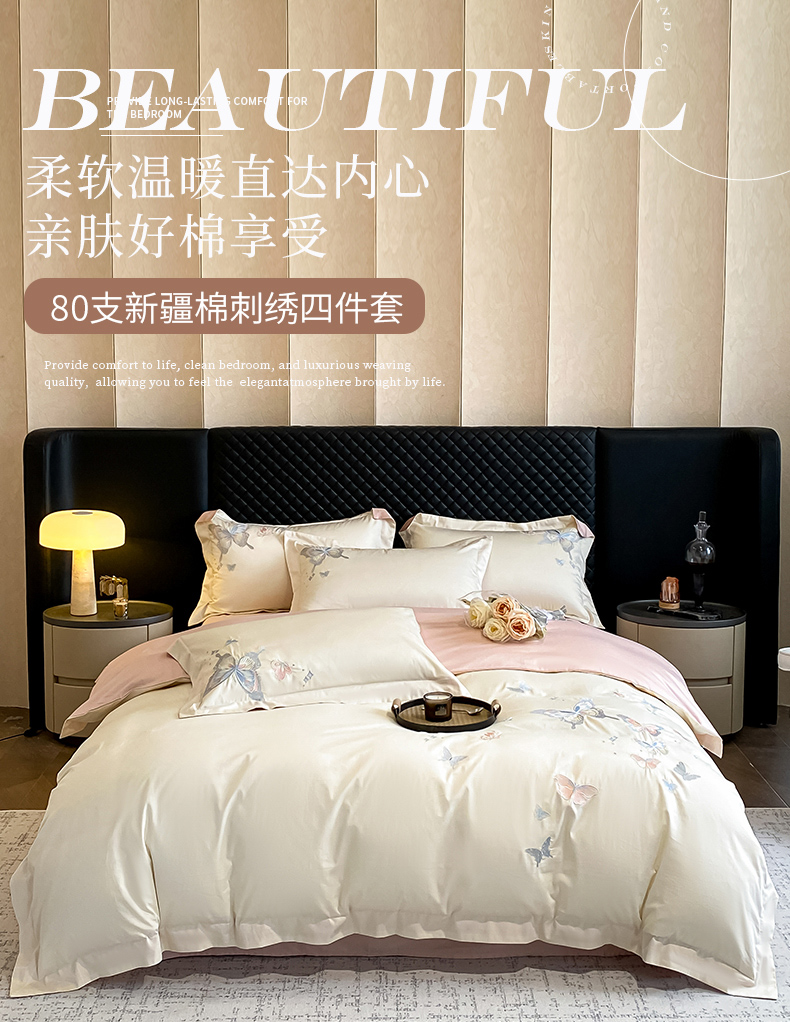 商品名称:爱缦 2024新款80支新疆棉四件套梦幻蝶舞系列 白粉色