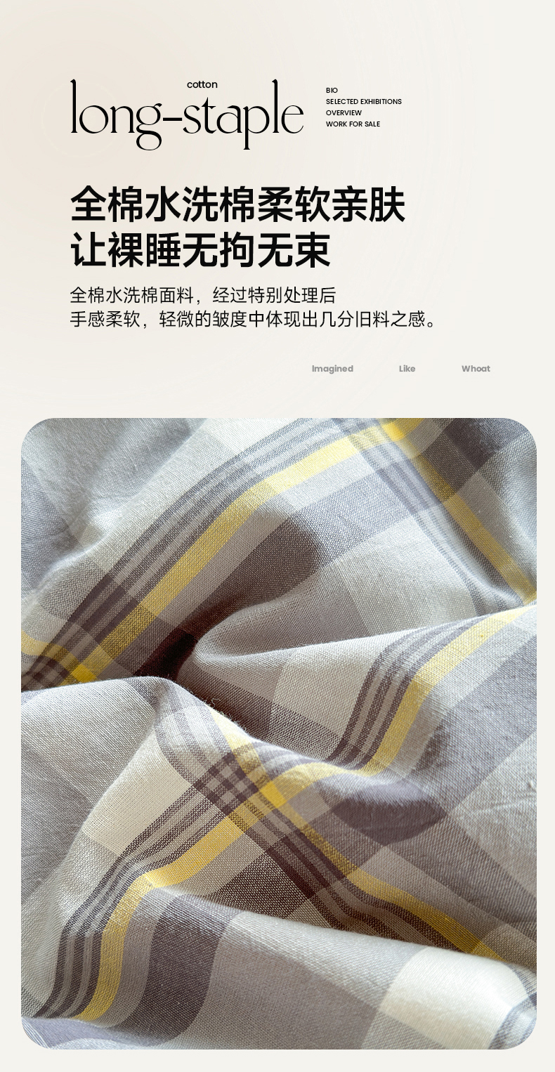 当前位置: 91家纺网 > 商品网购 > 床品套件 > 四件套 > 水洗棉四件套 > 宜家坊 2024新款全棉色织水洗棉宽边断角四件套 幸福恋曲-灰