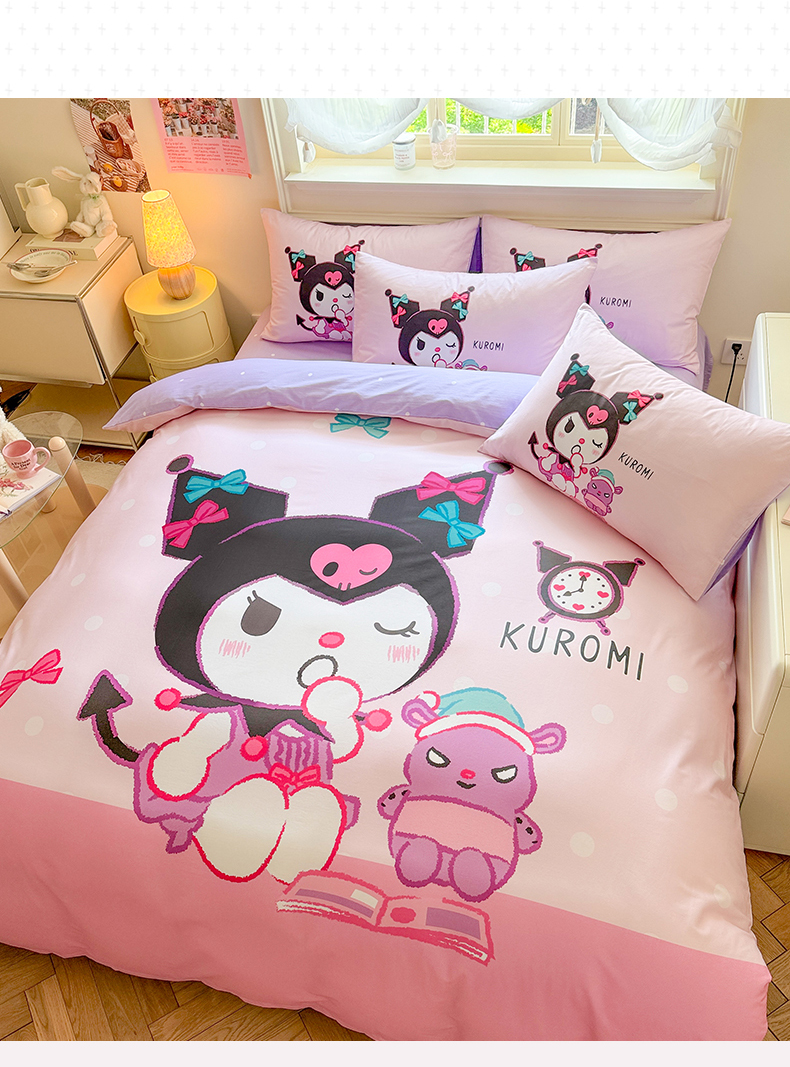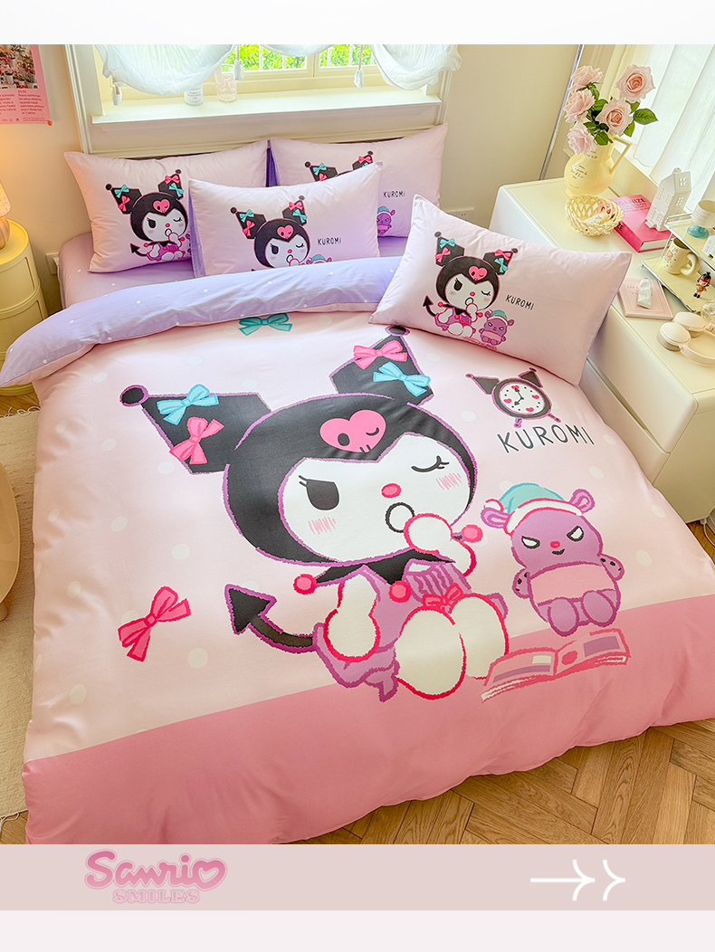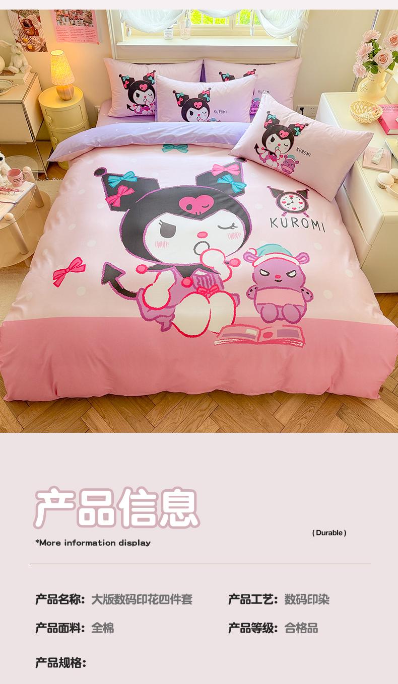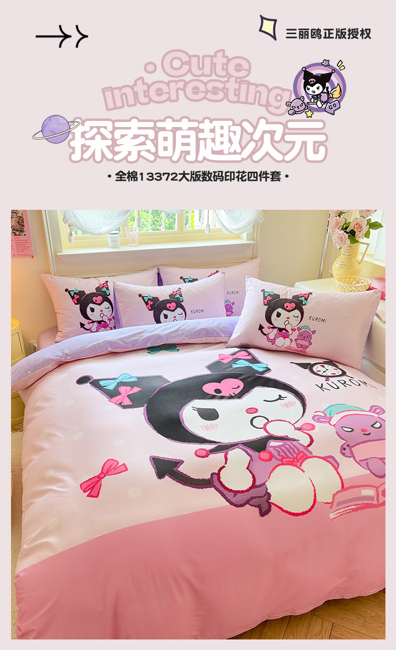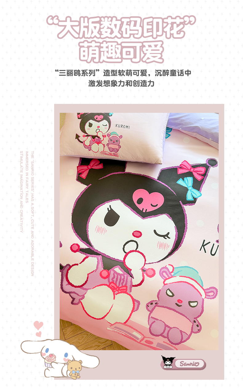 当前位置: 91家纺网 > 商品网购 > 床品套件 > 四件套 > 全棉普通四件套 > 名兮家居 2024新款三丽鸥全棉13372大版数码印花四件套【含防伪标】 书虫爱看书