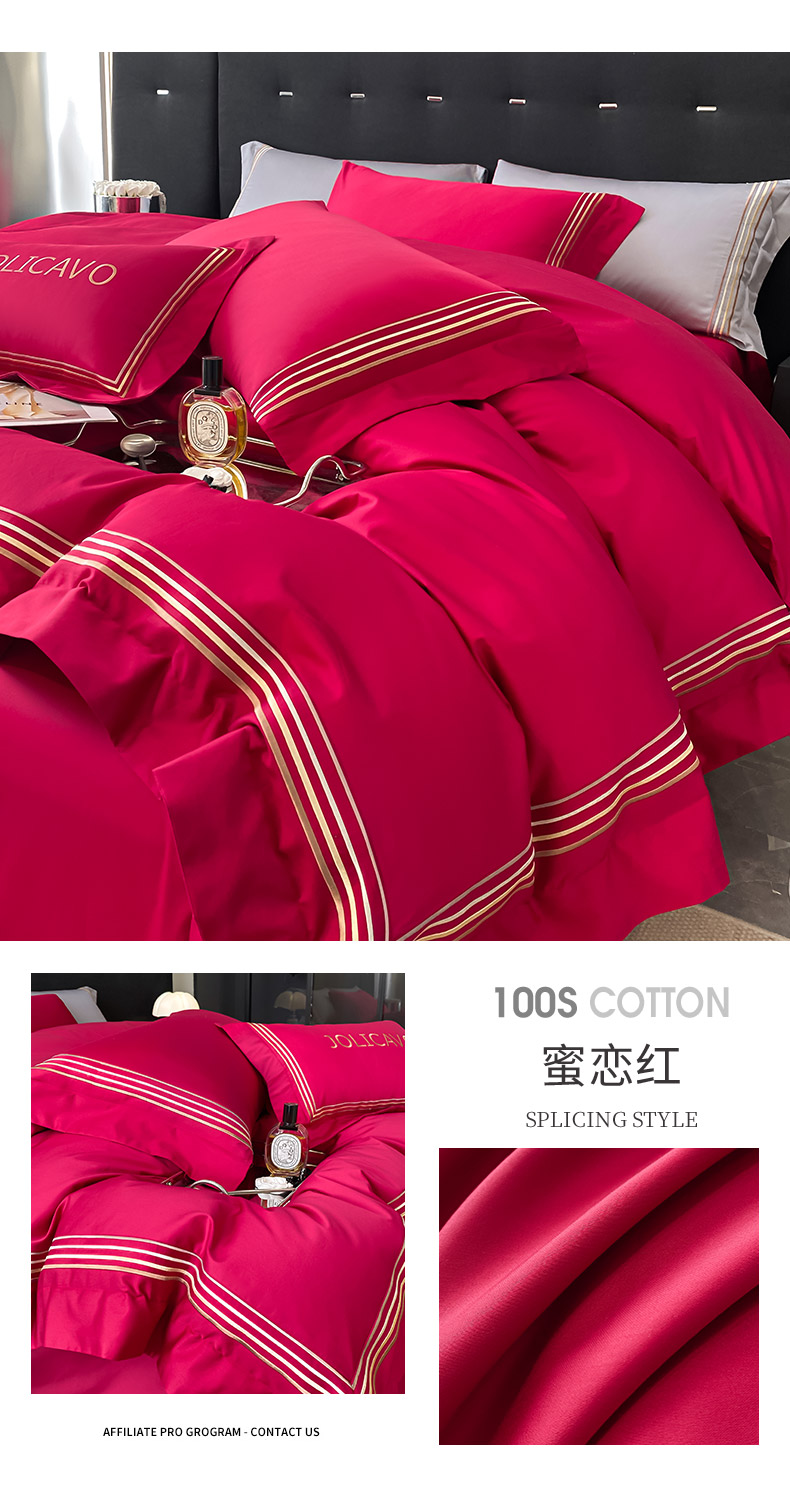 【婚庆爆款】100支长绒棉四件套全棉纯棉刺绣床单被套红色结婚床上用品,苹安喜乐-喜庆红,苹安喜乐-新妍玉,欢喜余生-喜庆红,欢喜余生-新妍玉