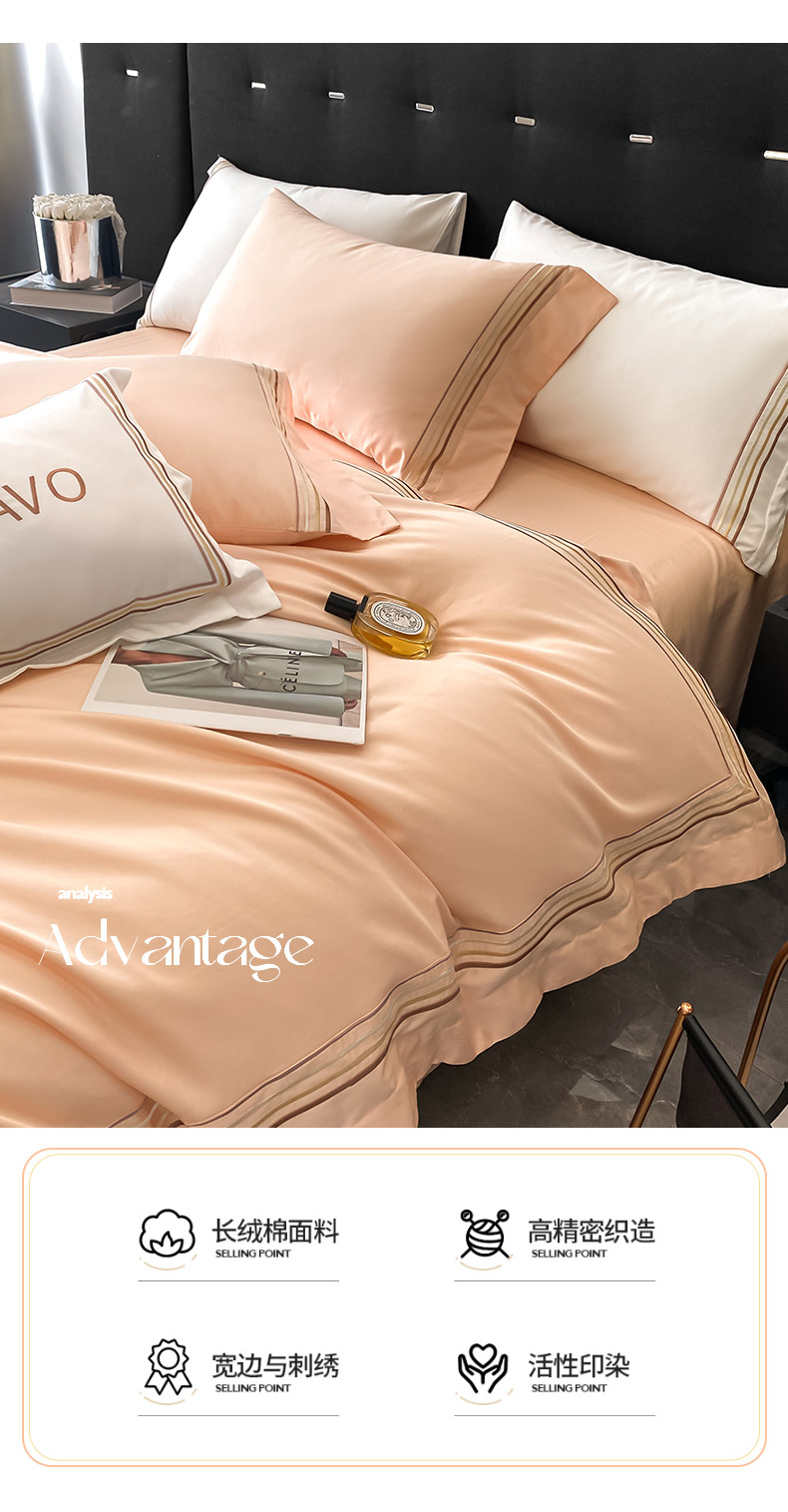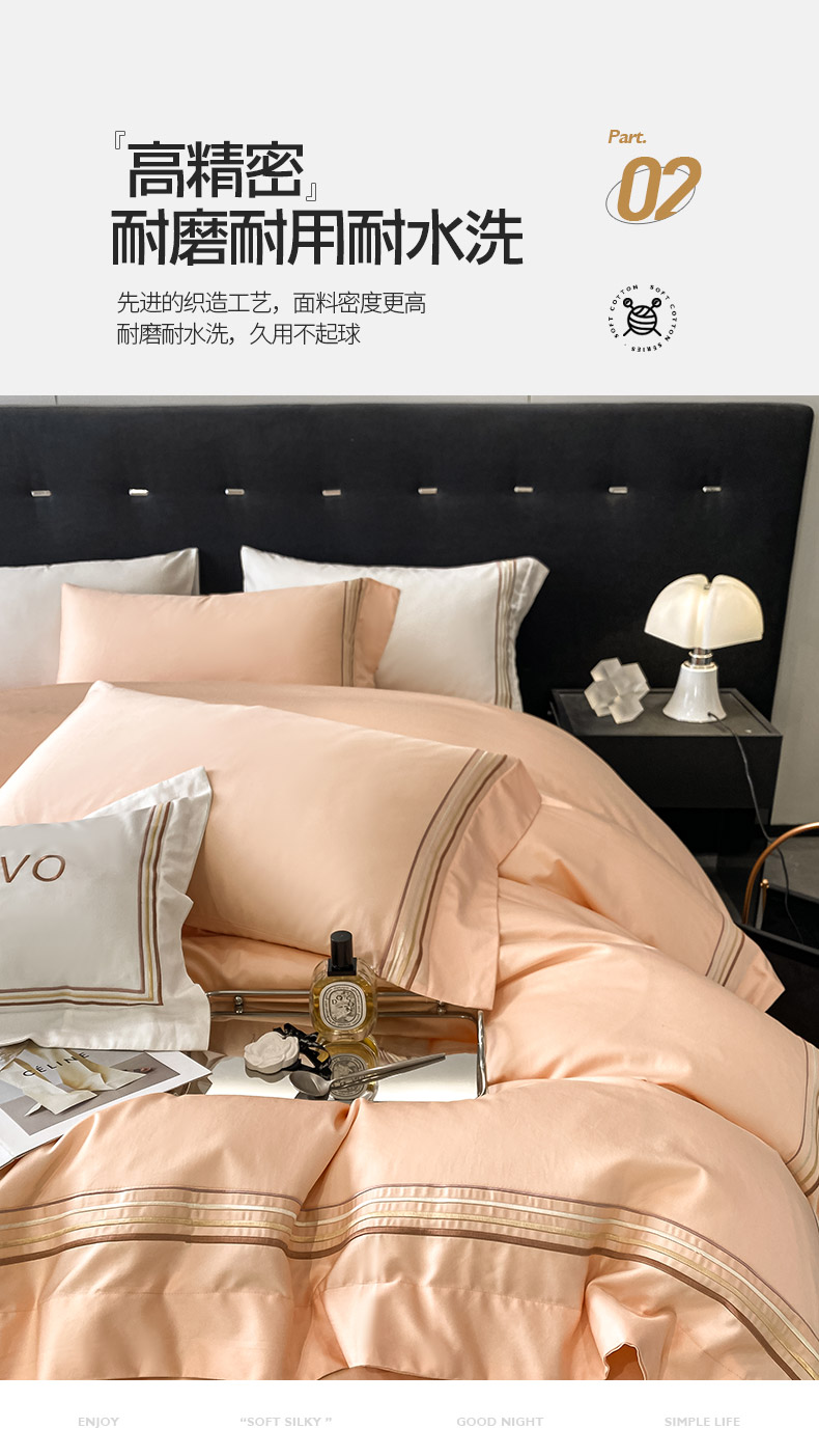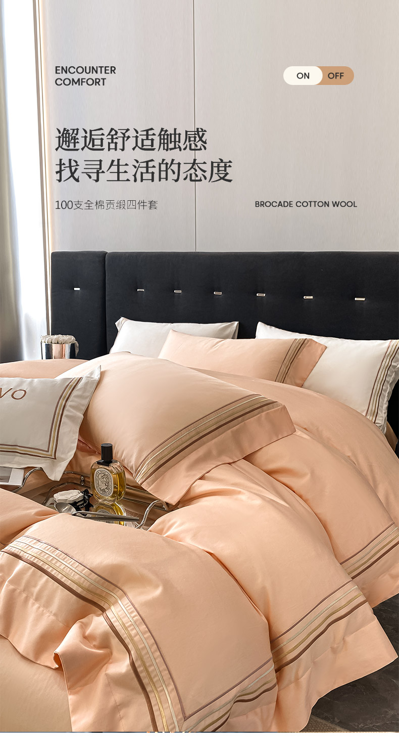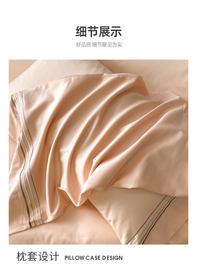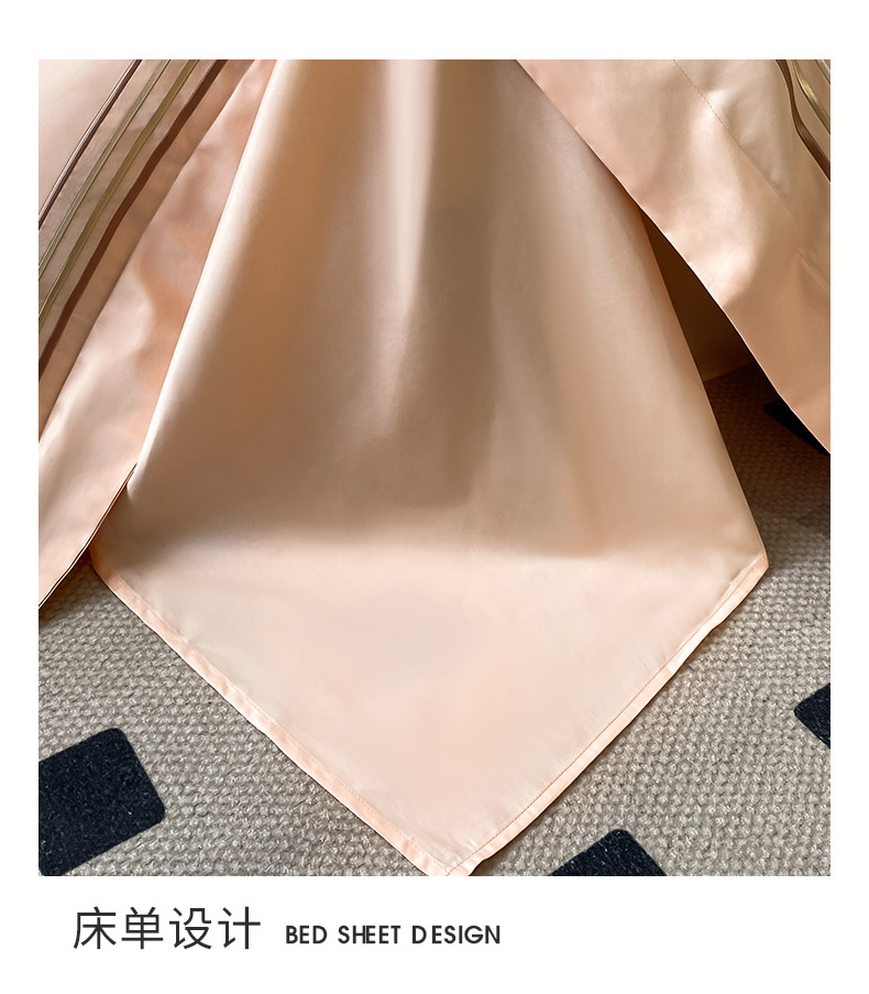 商品名称: 60支贡缎长绒棉四件套全棉纯棉新疆棉床单被套澳棉床笠款线条刺绣100支天丝棉床上用品 凯利-玫瑰金