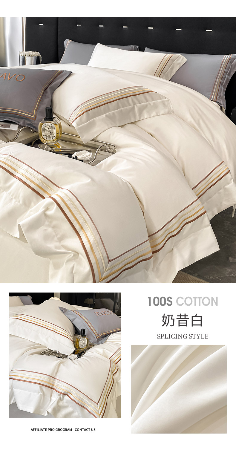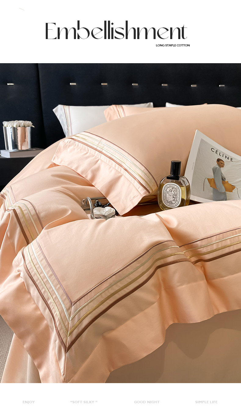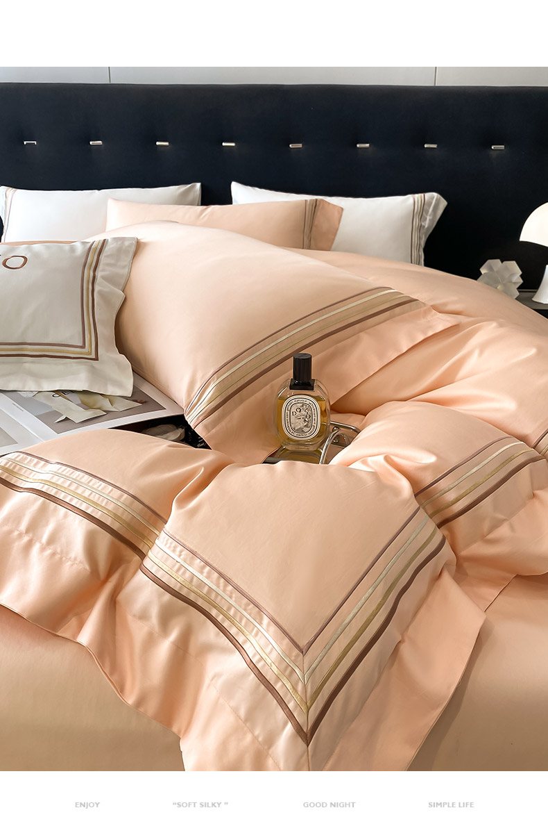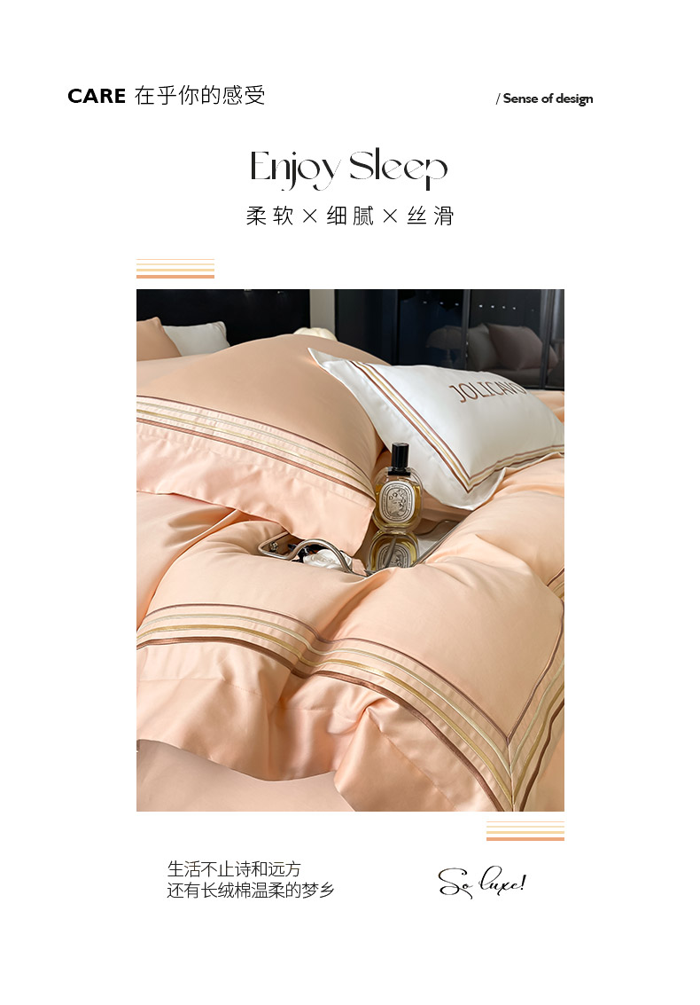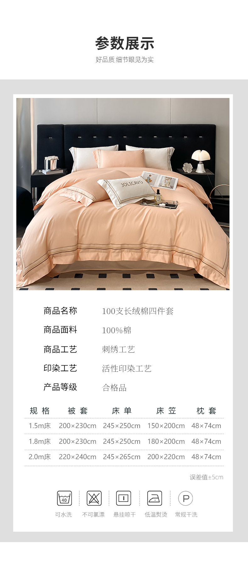 商品名称: 60支贡缎长绒棉四件套全棉纯棉新疆棉床单被套澳棉床笠款线条刺绣100支天丝棉床上用品 凯利-玫瑰金