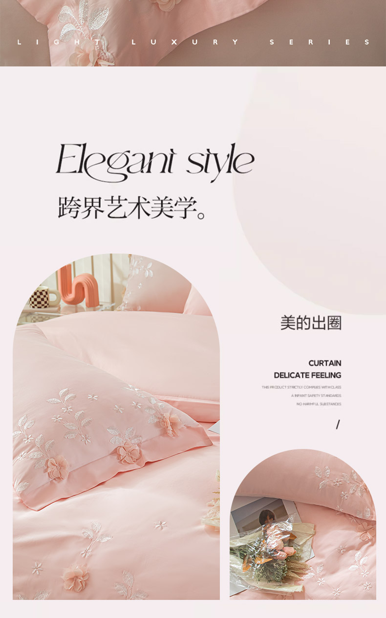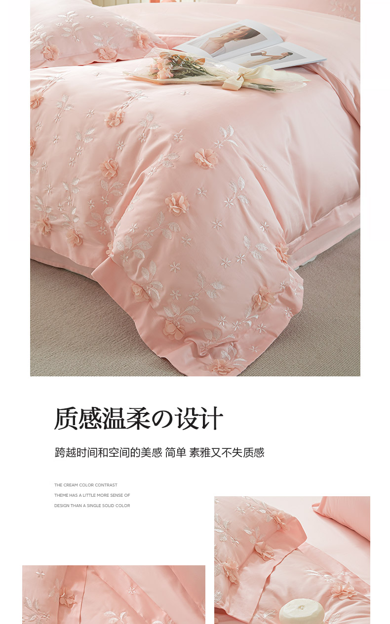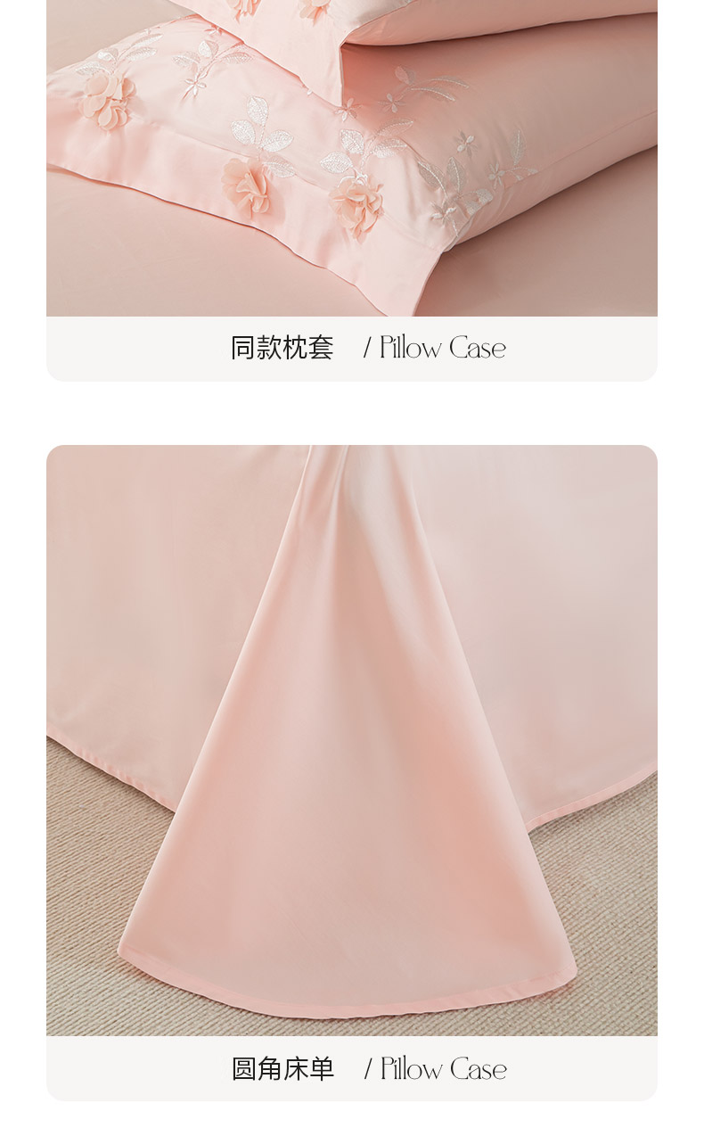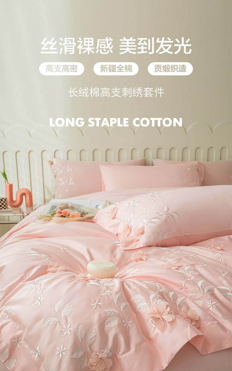 当前位置: 91家纺网 > 商品网购 > 床品套件 > 四件套 > 全棉普通四件套 > (总) 【立体绣花】100支贡缎长绒棉四件套全棉纯棉粉色公主风床单被套简约纯色床上用品