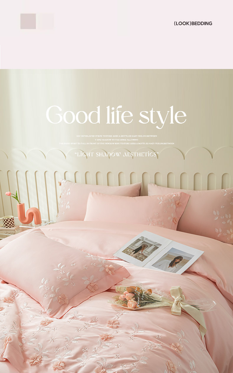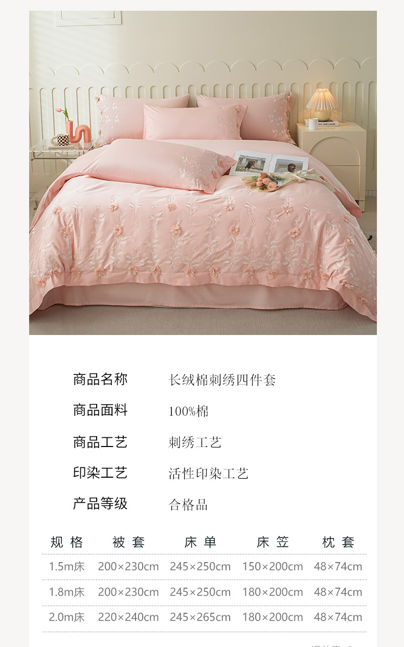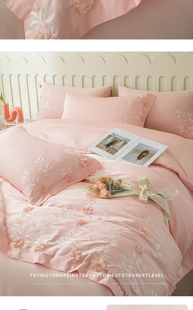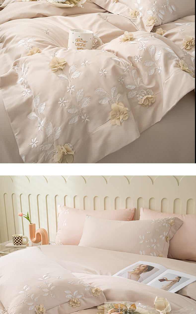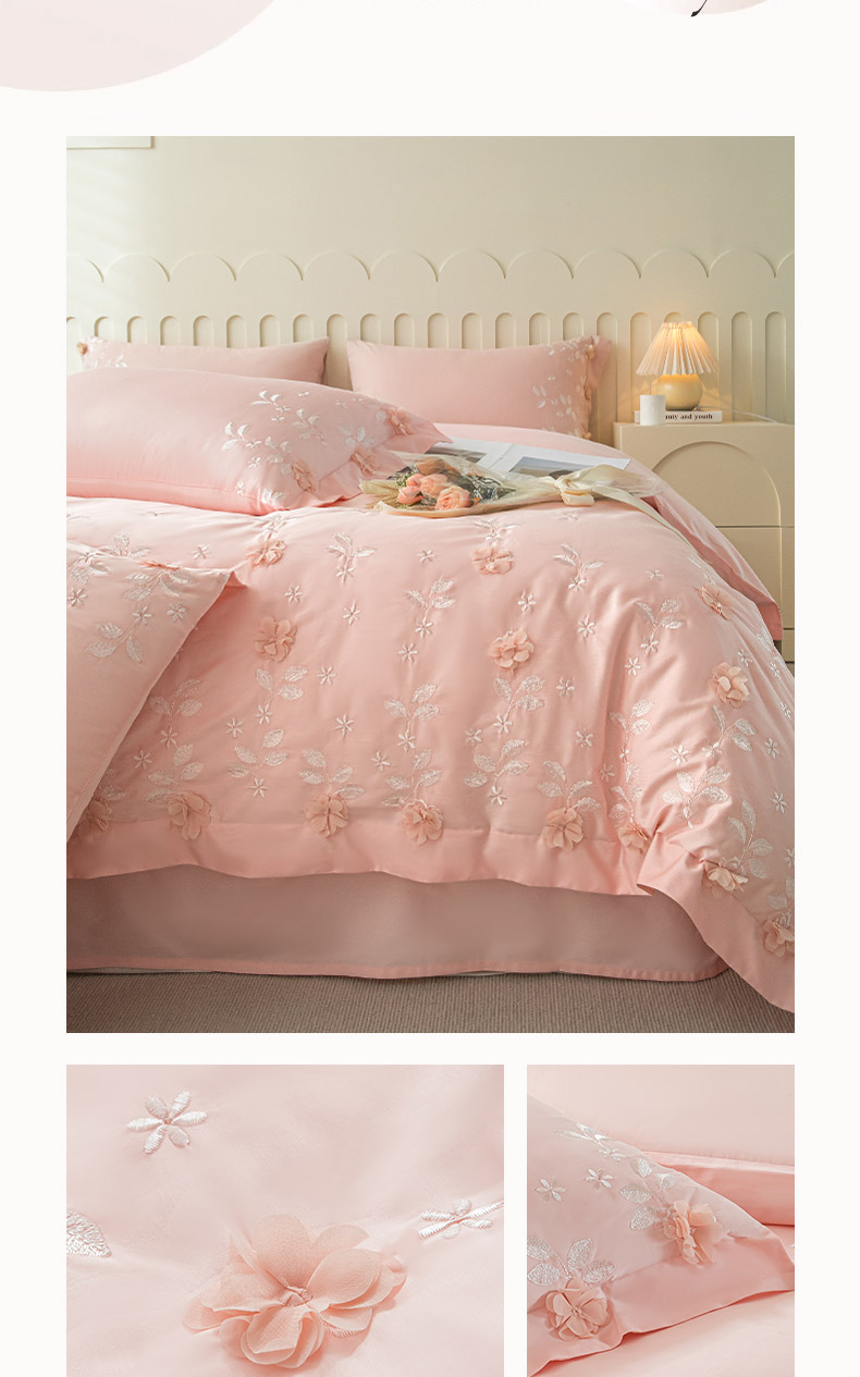当前位置: 91家纺网 > 商品网购 > 床品套件 > 四件套 > 全棉普通四件套 > (总) 【立体绣花】100支贡缎长绒棉四件套全棉纯棉粉色公主风床单被套简约纯色床上用品