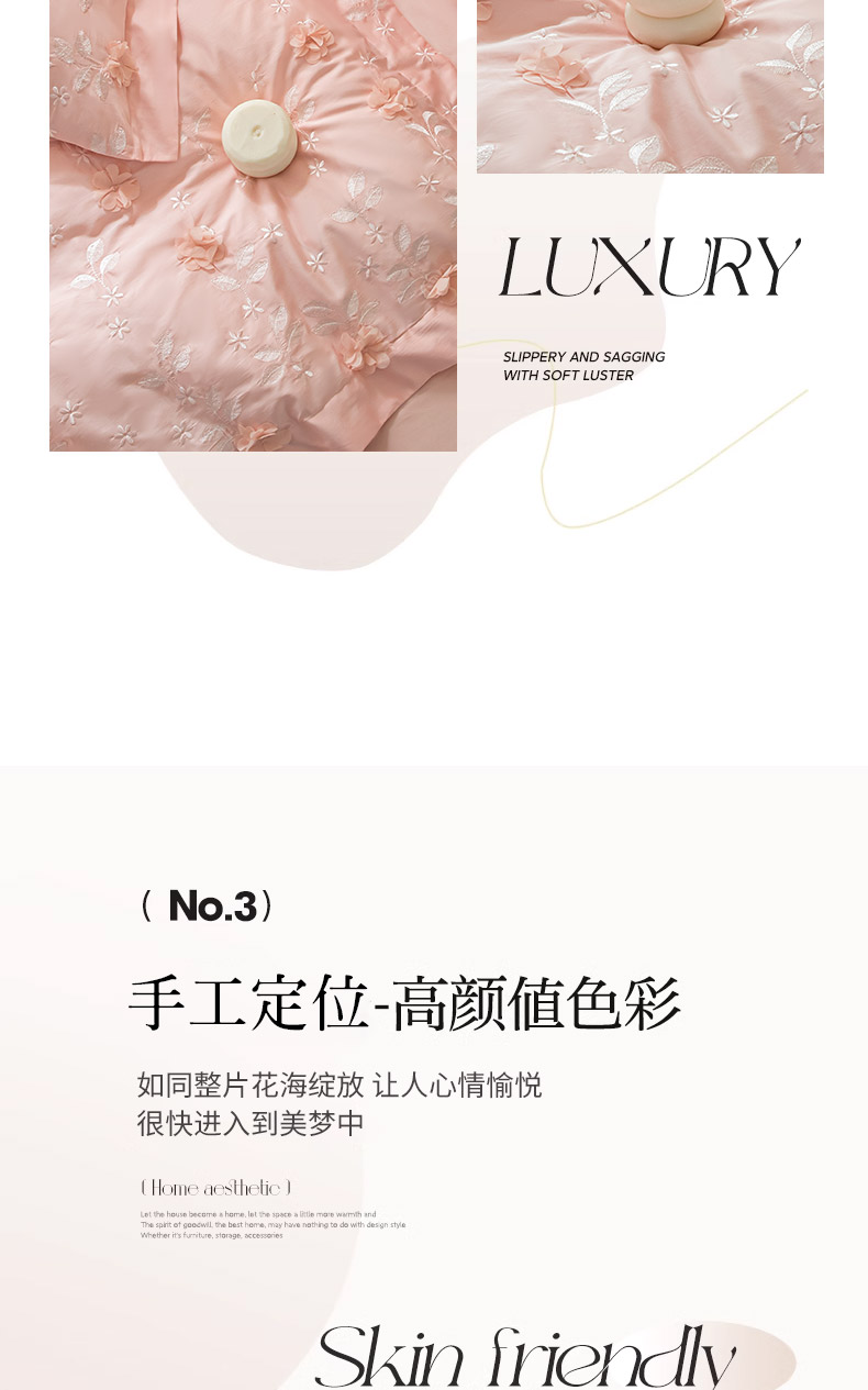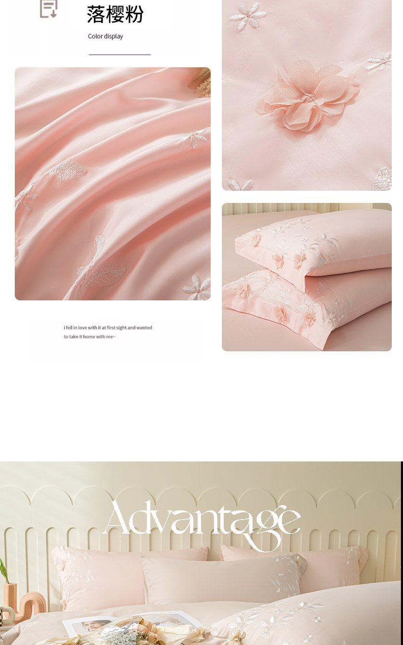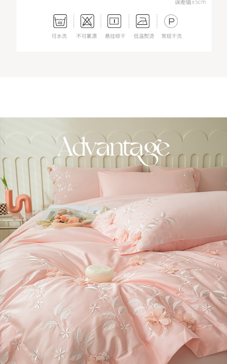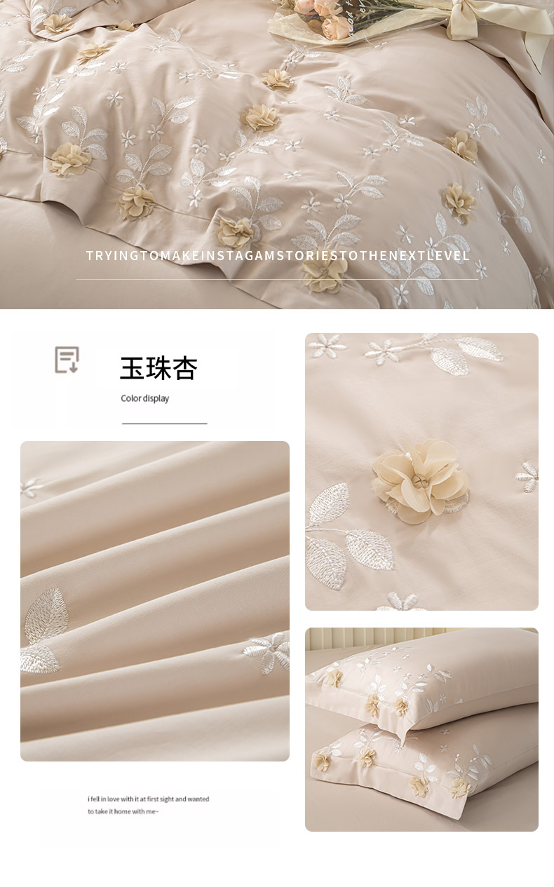 当前位置: 91家纺网 > 商品网购 > 床品套件 > 四件套 > 全棉普通四件套 > (总) 【立体绣花】100支贡缎长绒棉四件套全棉纯棉粉色公主风床单被套简约纯色床上用品