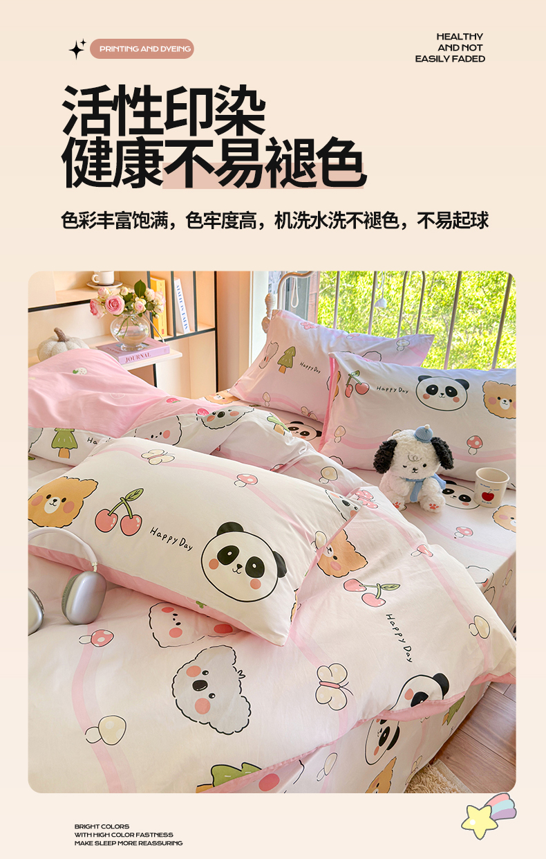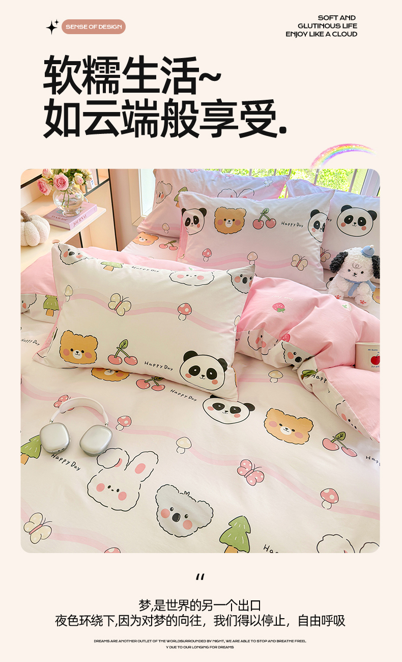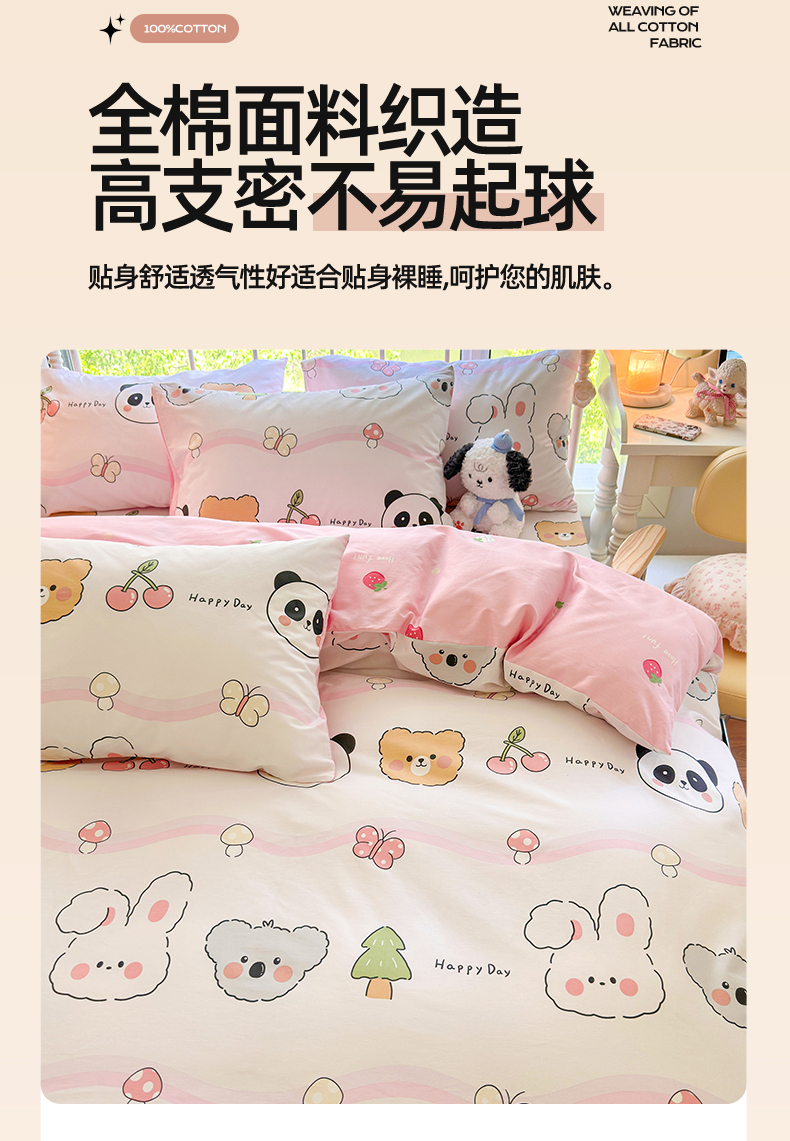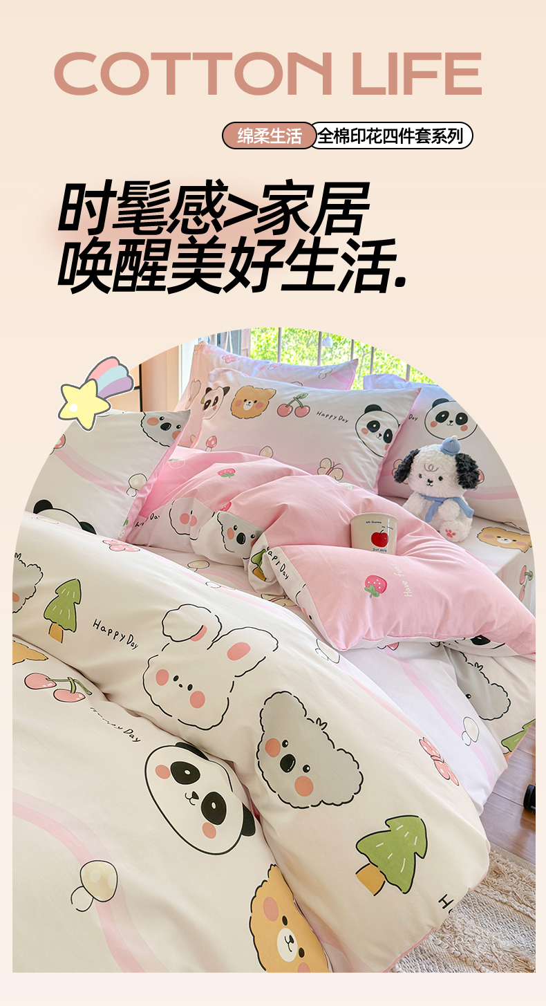 当前位置: 91家纺网 > 商品网购 > 床品套件 > 四件套 > 全棉普通四件套 > 名兮 2024新款全棉亲肤印花四件套 欢乐多多