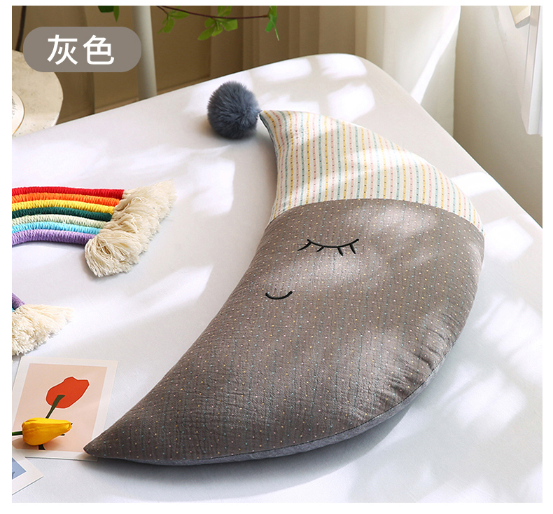 (总)蔻眠 花边款多功能全棉月亮长抱枕夹腿抱枕芯月亮枕头,主图,花边款月亮-驼格,花边款月亮-橙格,花边款月亮-灰格,花边款月亮-绿格