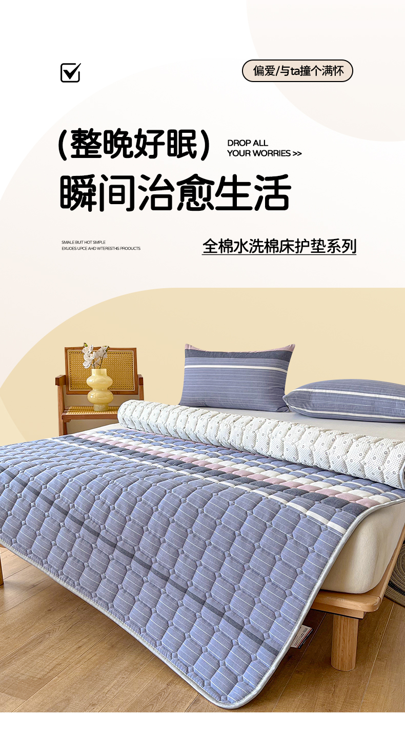 当前位置: 91家纺网 > 商品网购 > 床垫/床褥 > 普通床垫 > 卡伦家纺 2025新款全棉色织水洗棉夹棉床垫席梦思保护垫 格林兰