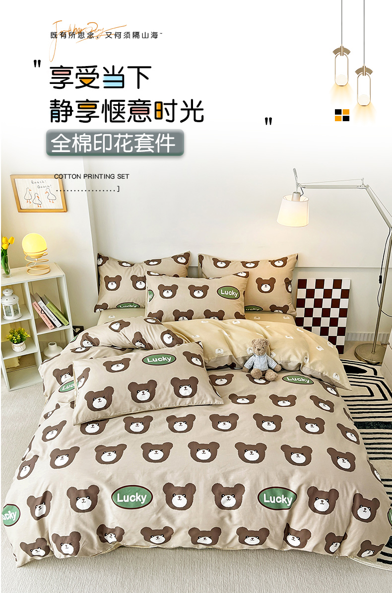 (总)西引力 2025新款全棉卡通印花四件套,皮皮狗,英伦蓝,布鲁斯,草莓小兔,草莓圆,大脸猫,格调人生,光辉岁月,滑板狗,经典回味,开运龙 白,铃兰花,律动蓝,煤球,蜜桃兔,奶牛猫,欧尼亚,文森特,寻觅,英伦字母,影子熊,宇航员,遇见浪漫,云端