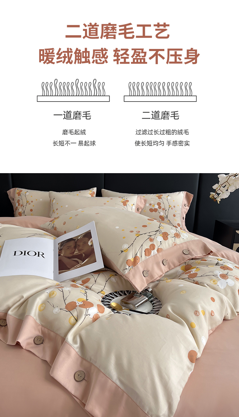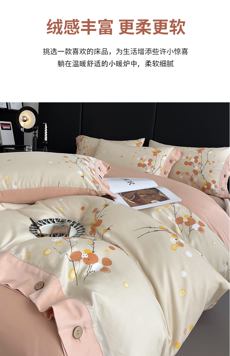 当前位置: 91家纺网 > 商品网购 > 床品套件 > 四件套 > 普通磨毛四件套 > 艾迪尚家纺 2025新款柔丝茸磨毛印花纽扣款四件套 夏木之梦