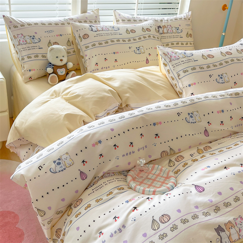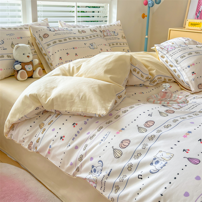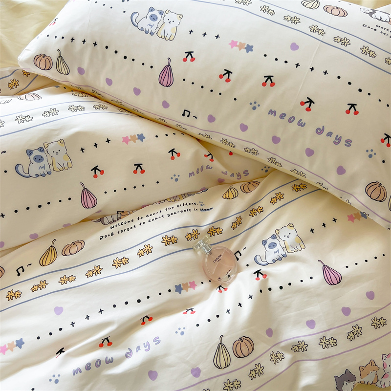 红馆 2025年全棉12868印花系列四件套南瓜小猫