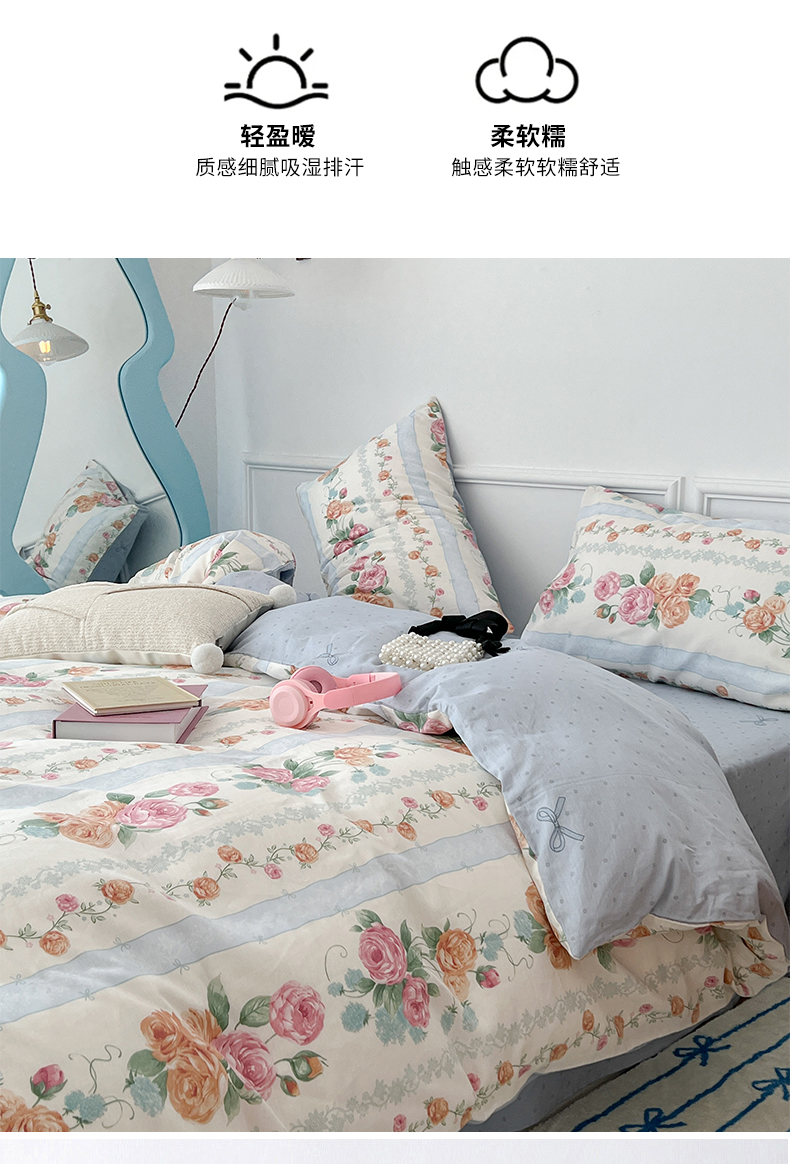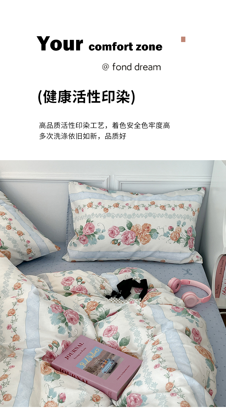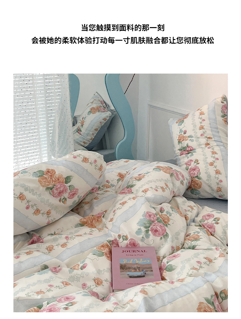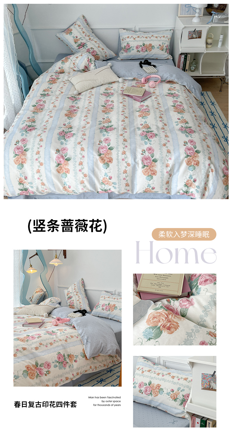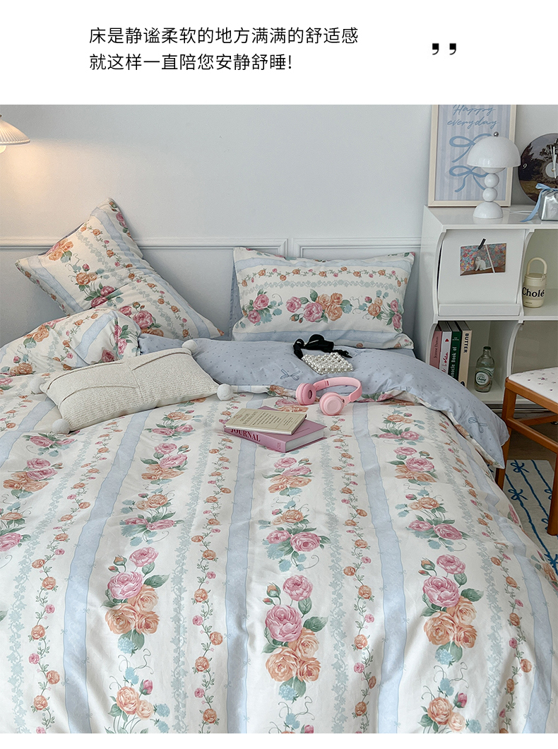 商品名称:2024新款13070跑量款全棉四件套--花卉系列 竖条蔷薇花