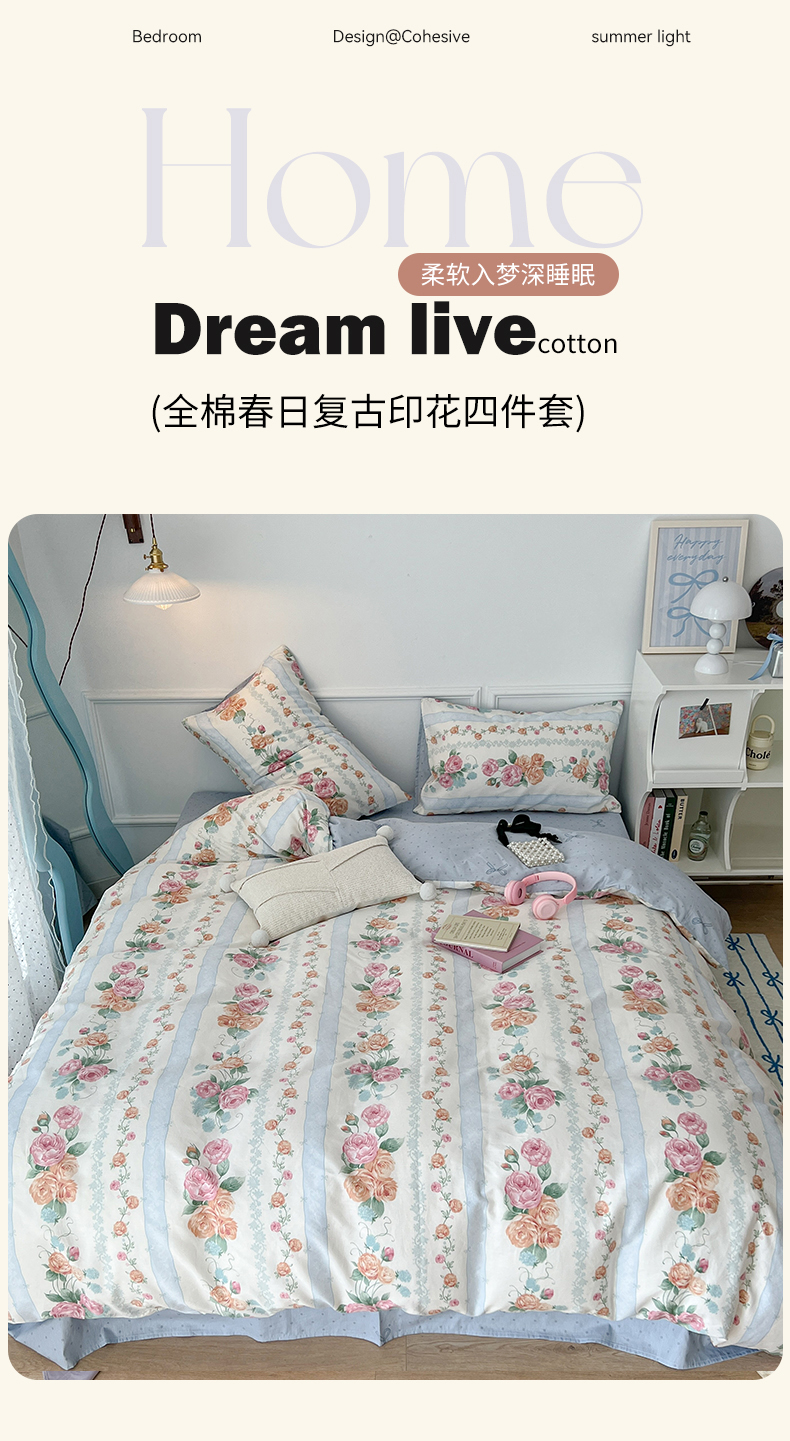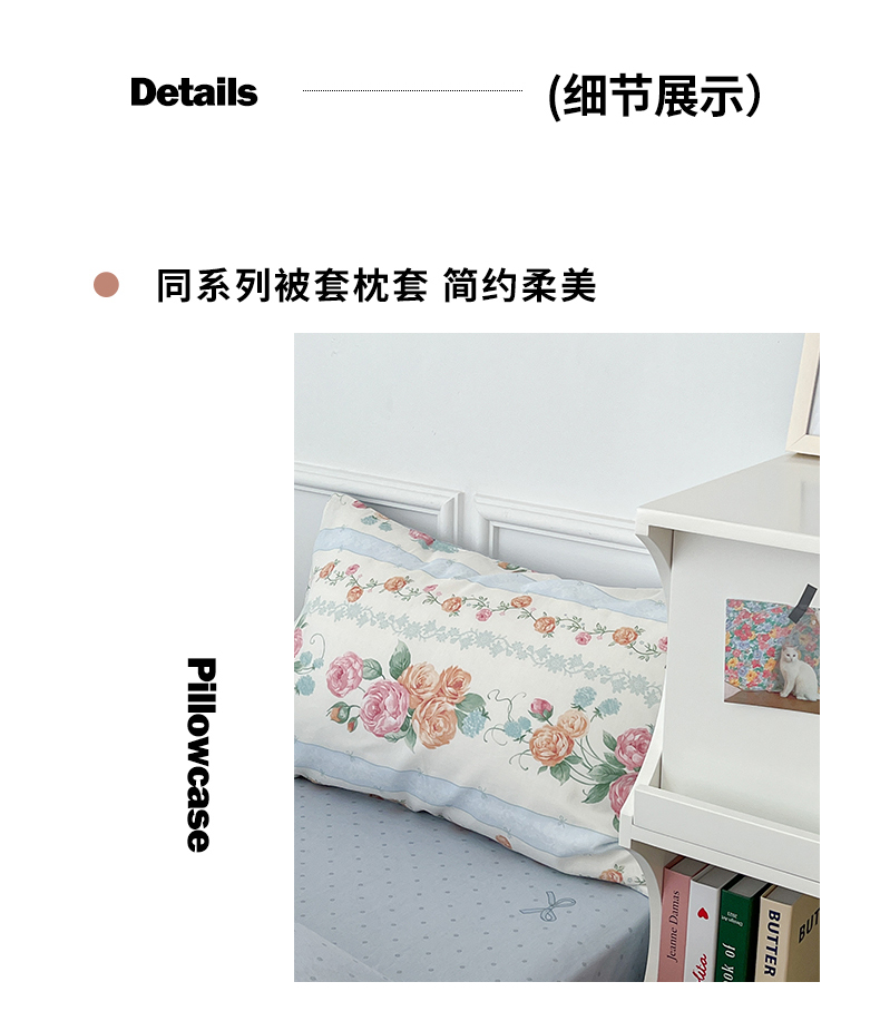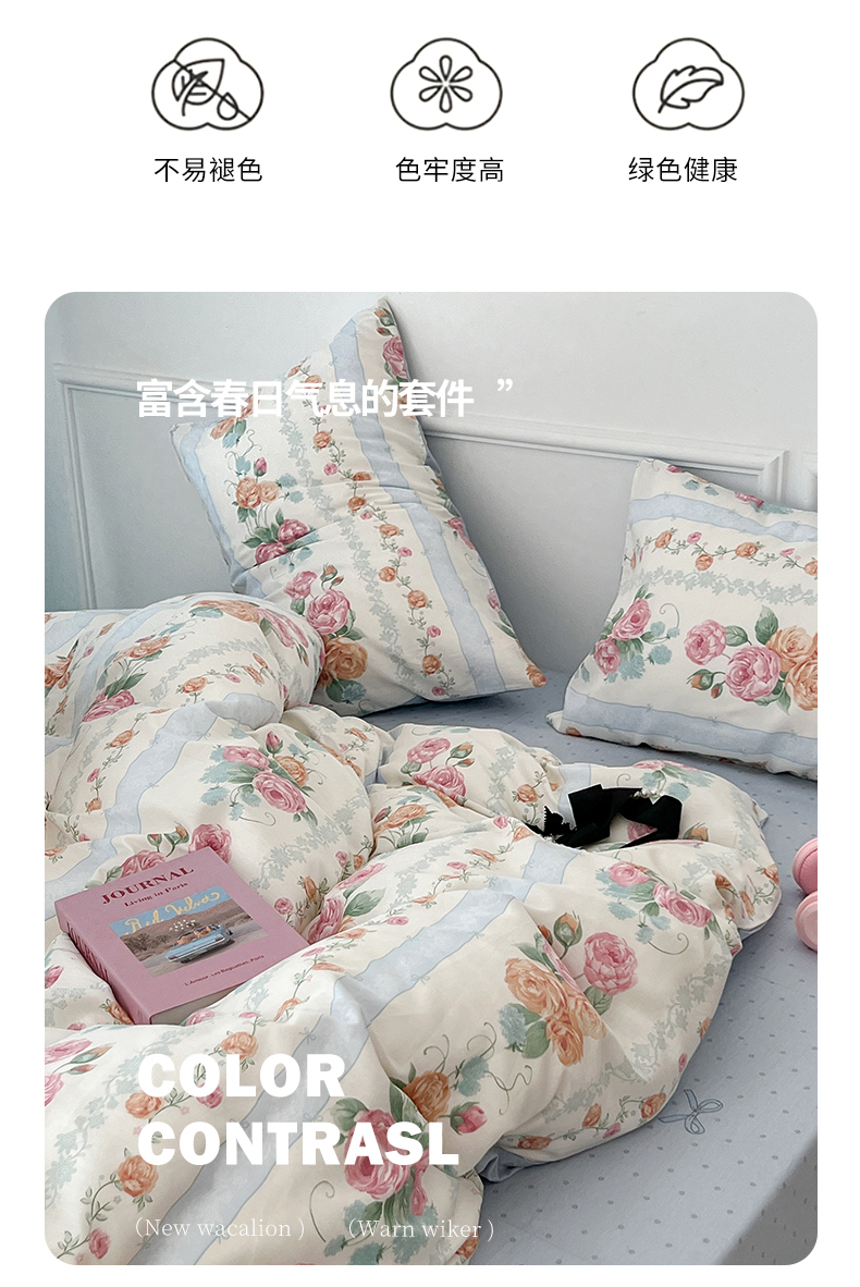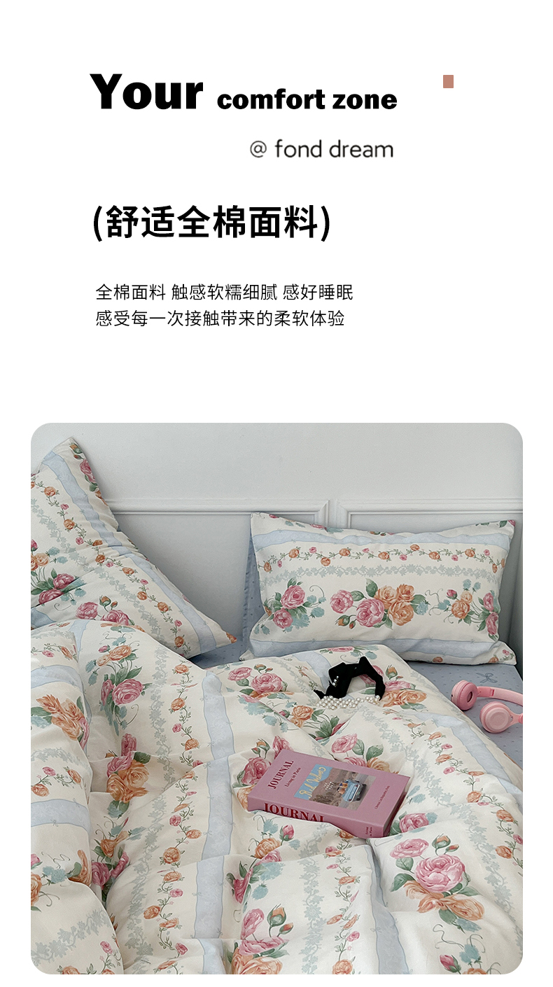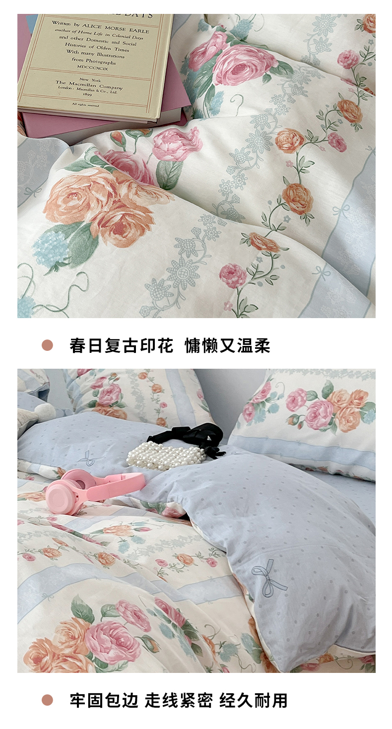 商品名称:2024新款13070跑量款全棉四件套--花卉系列 竖条蔷薇花