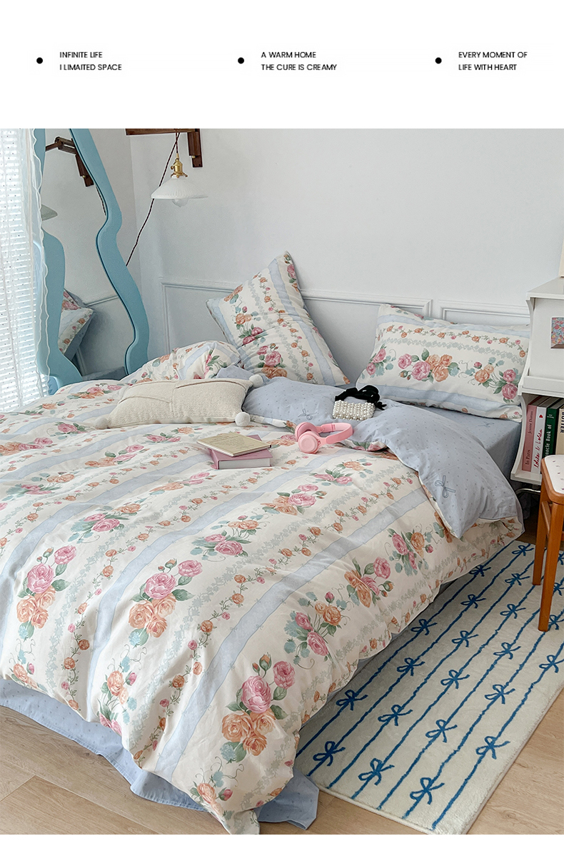 2024新款13070跑量款全棉四件套--花卉系列 竖条蔷薇花