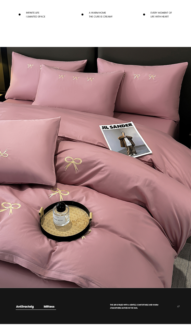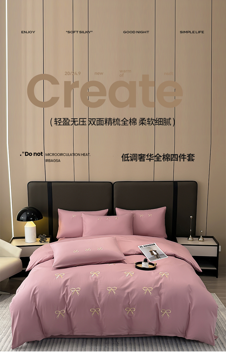 (总)银石 2024新款酒店风锦缎四件套,玫黛粉,梦想白,天青兰,星空灰,远峰蓝