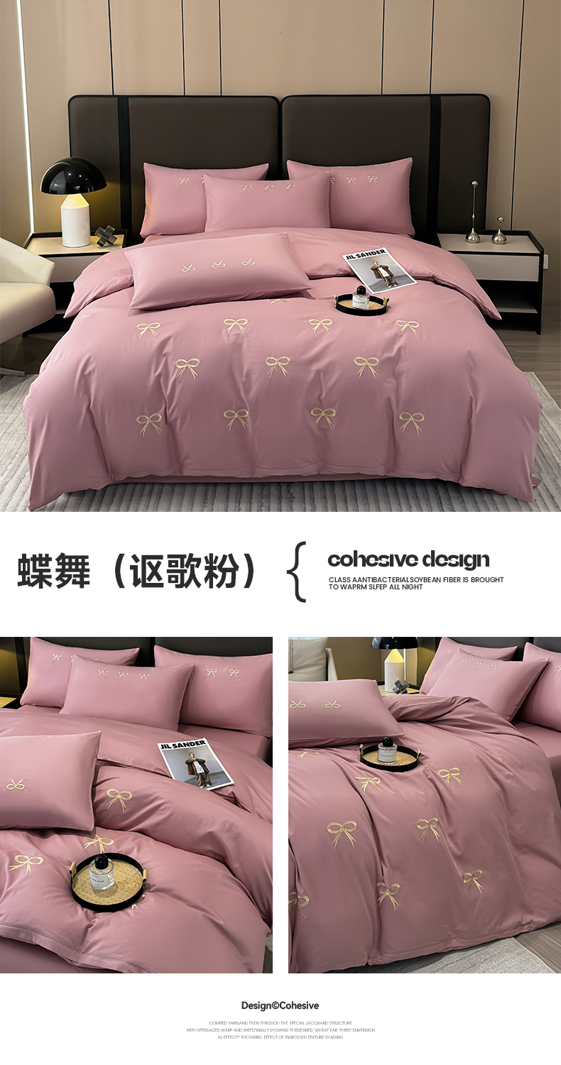 商品名称:2024新款高密度13376全棉(蝶舞)四件套 蝶舞(讴歌粉)