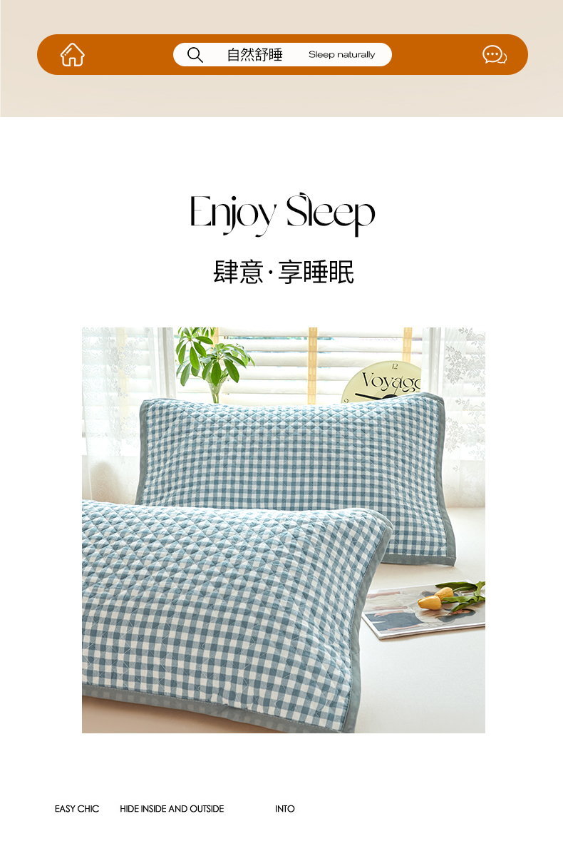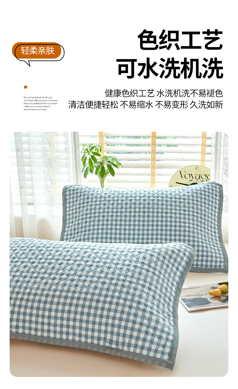 (总)美宜家 2026新款全棉枕头套高密色织水洗加棉绗缝高端纯色枕套,极简山灰,极简米其,极简兰灰,极简仔兰