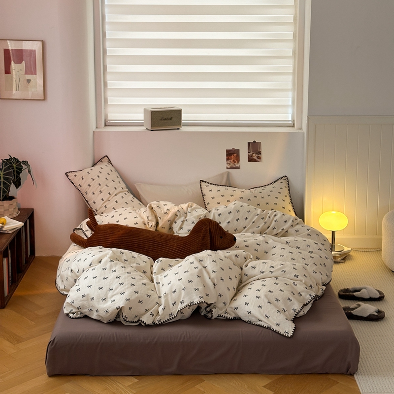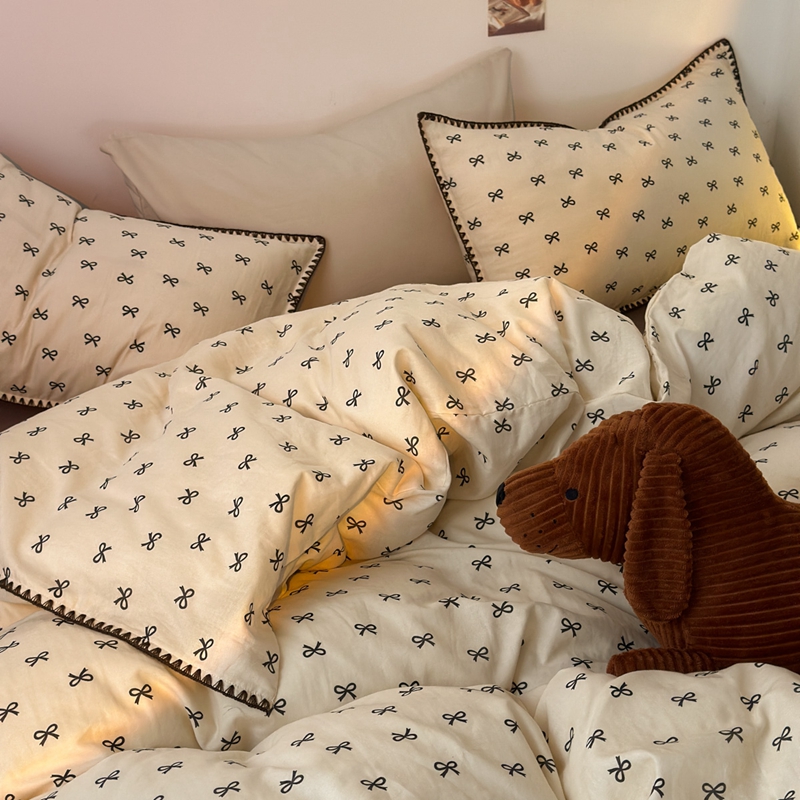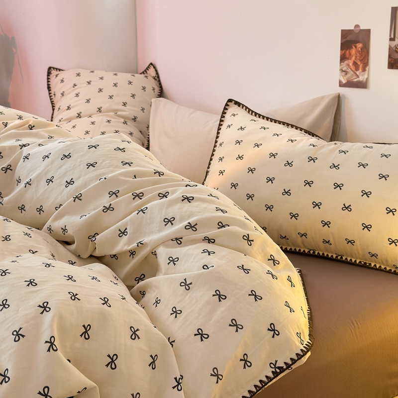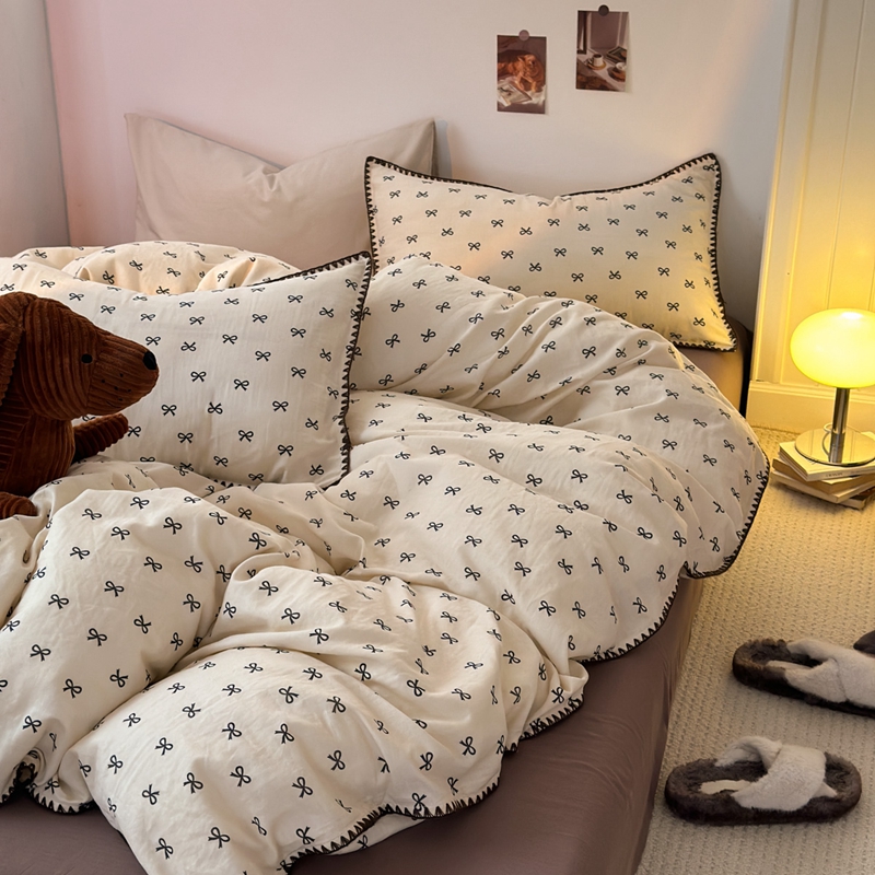 洋铭区(原狠狠爱) 2024新款全棉双层纱四件套 黑色蝴蝶结