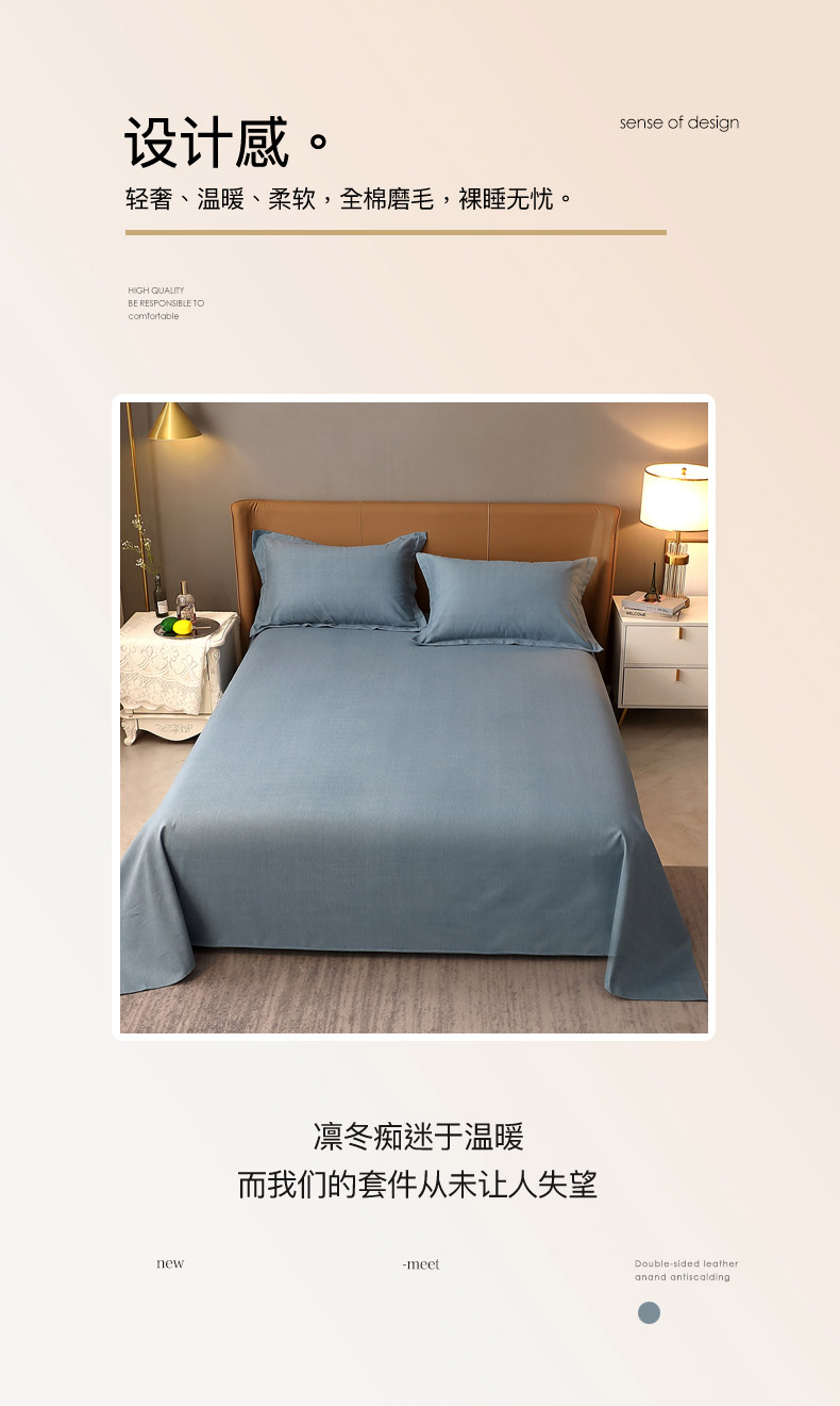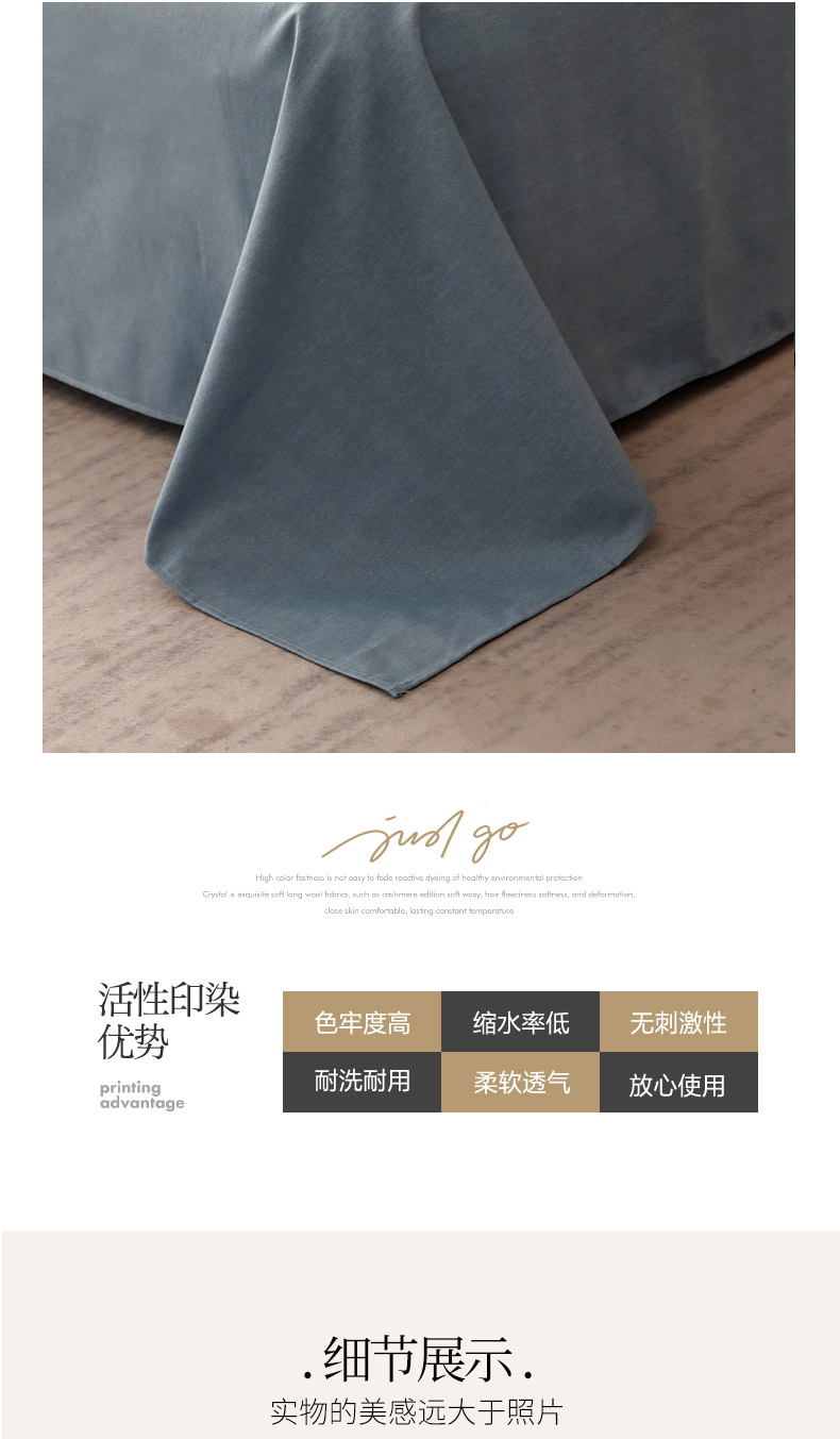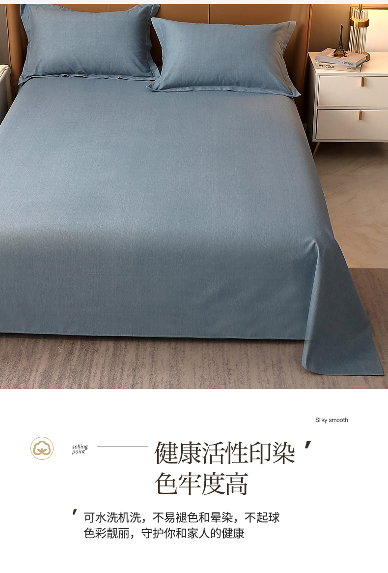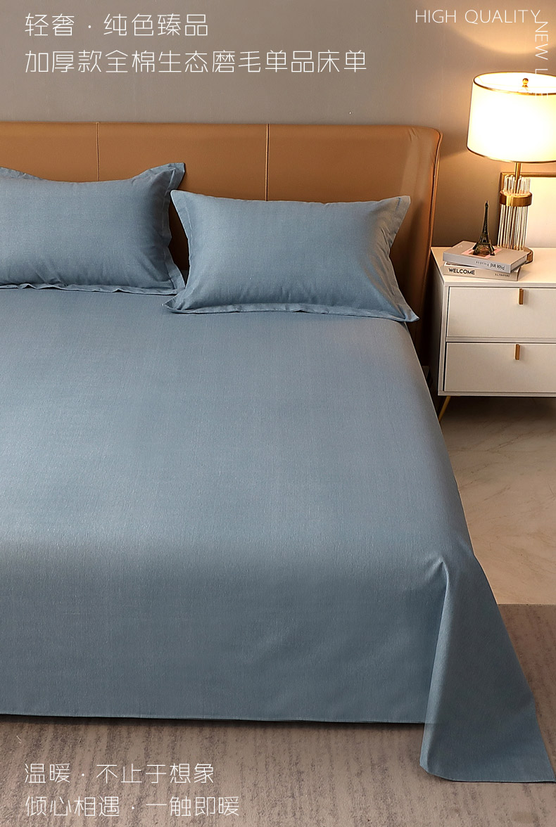 商品名称:晶缦家纺 2024新款加厚纯棉喷气全棉纯色生态磨毛多规格单品床单 纯依-蓝灰