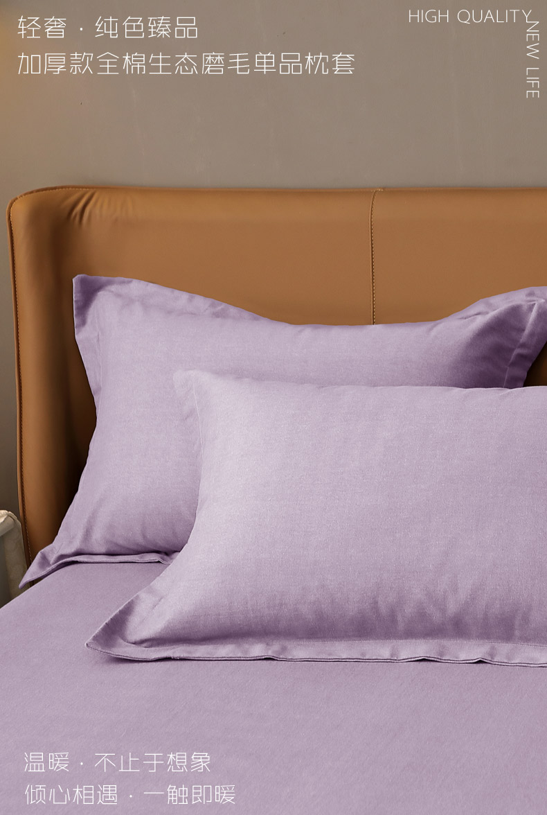 晶缦家纺 2024新款加厚纯棉喷气全棉纯色生态磨毛多规格单品枕套 纯依-浅紫