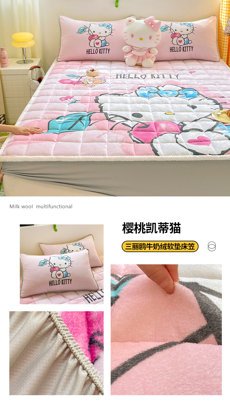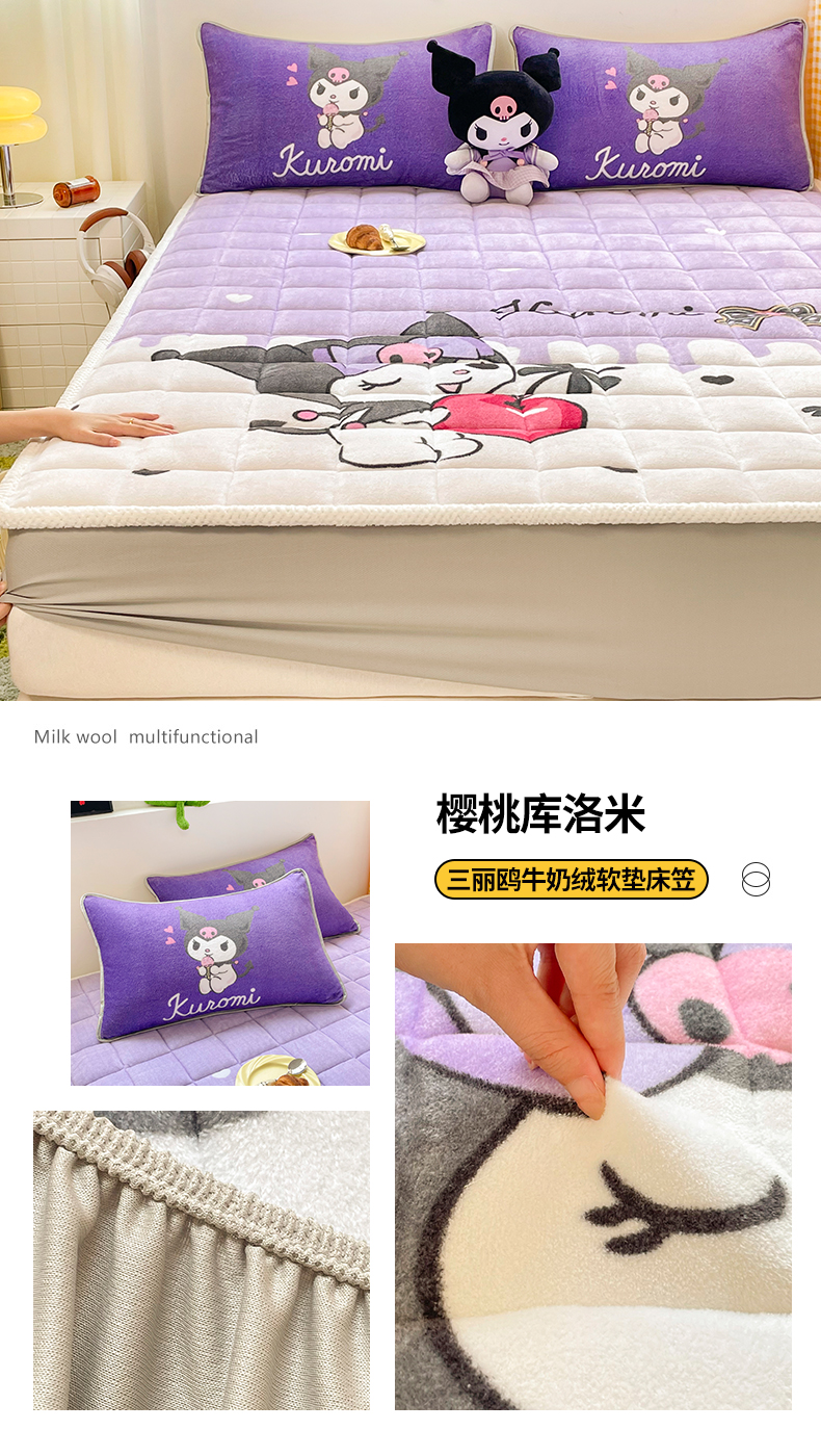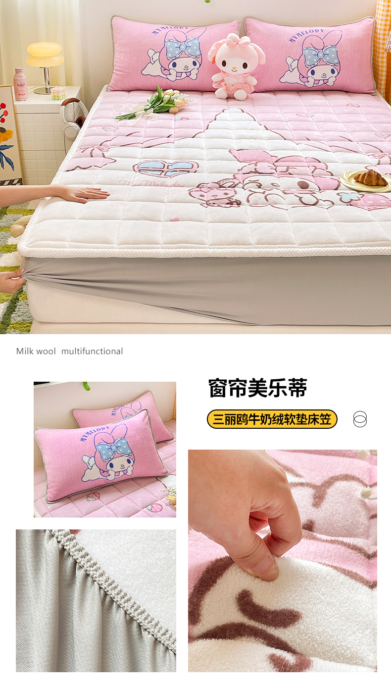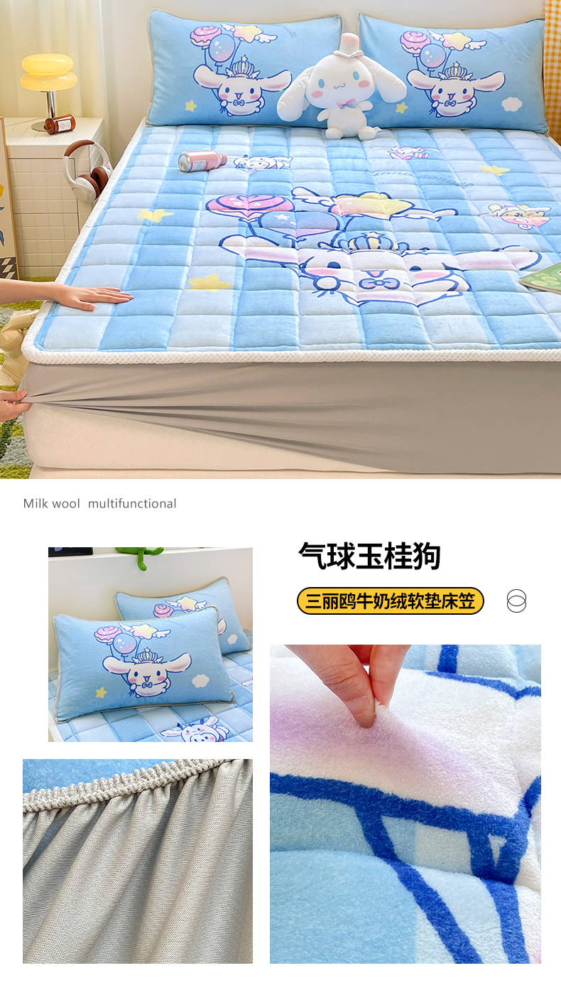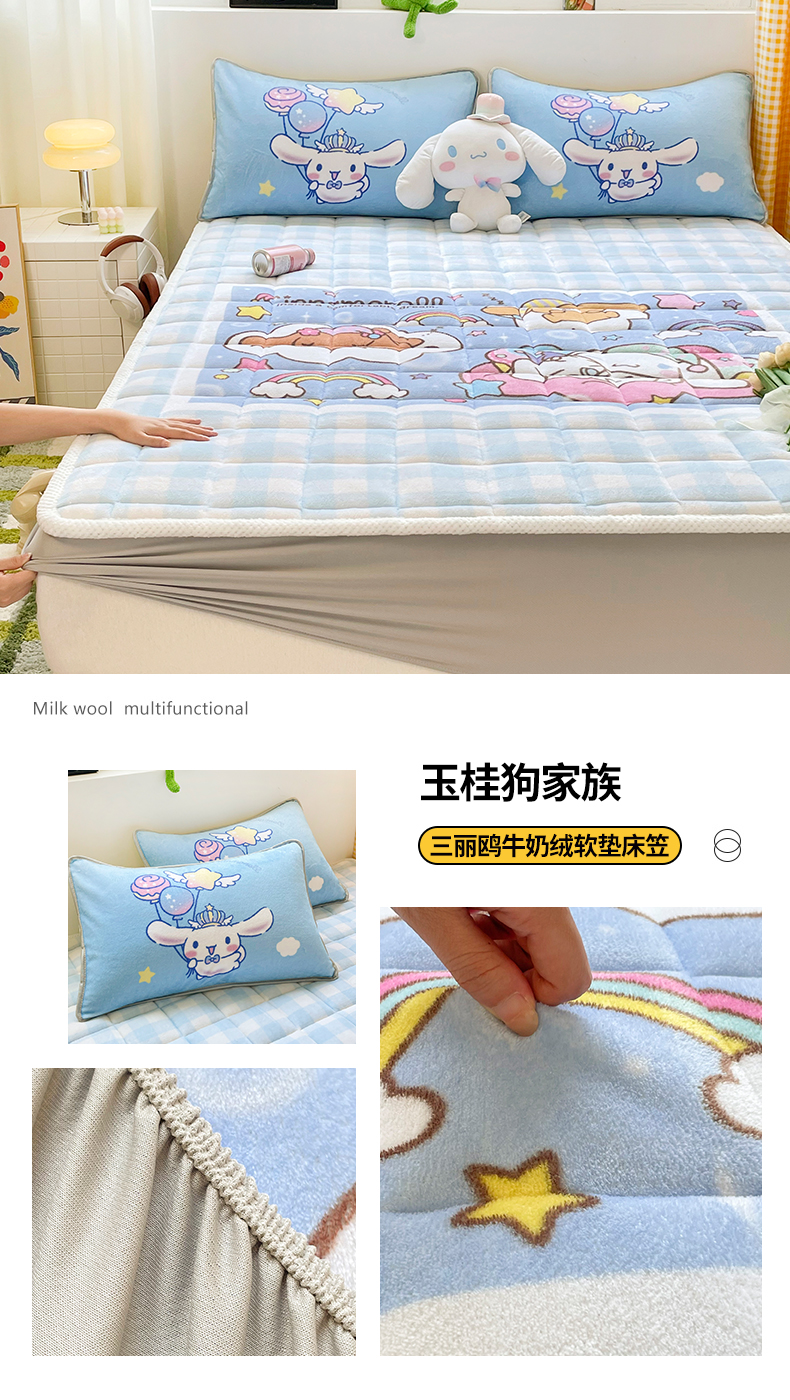 商品名称:(总)米帛家纺 2024新款三丽鸥印花牛奶绒夹棉床笠三件套