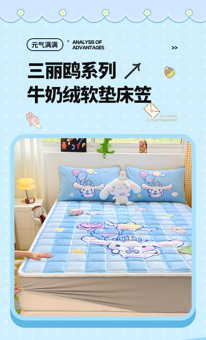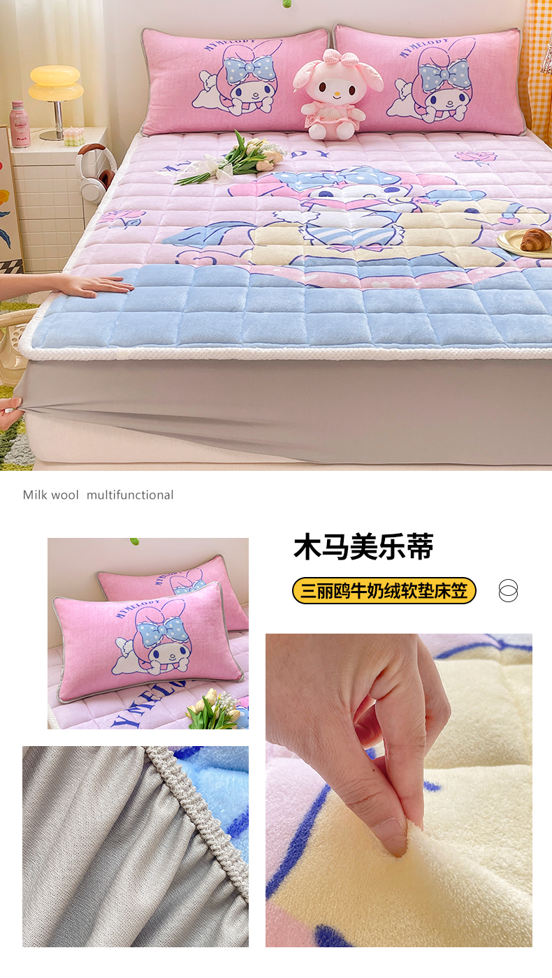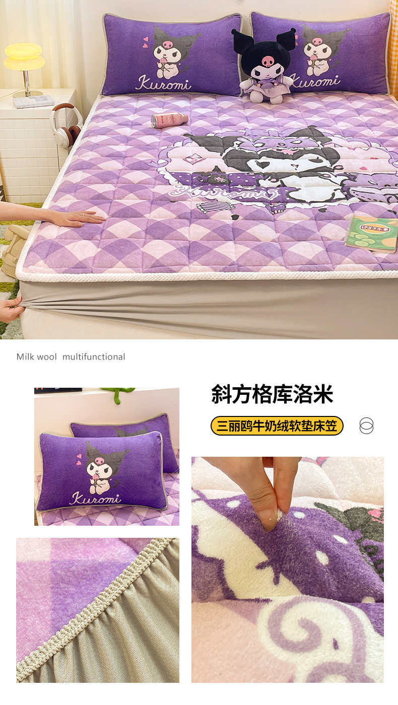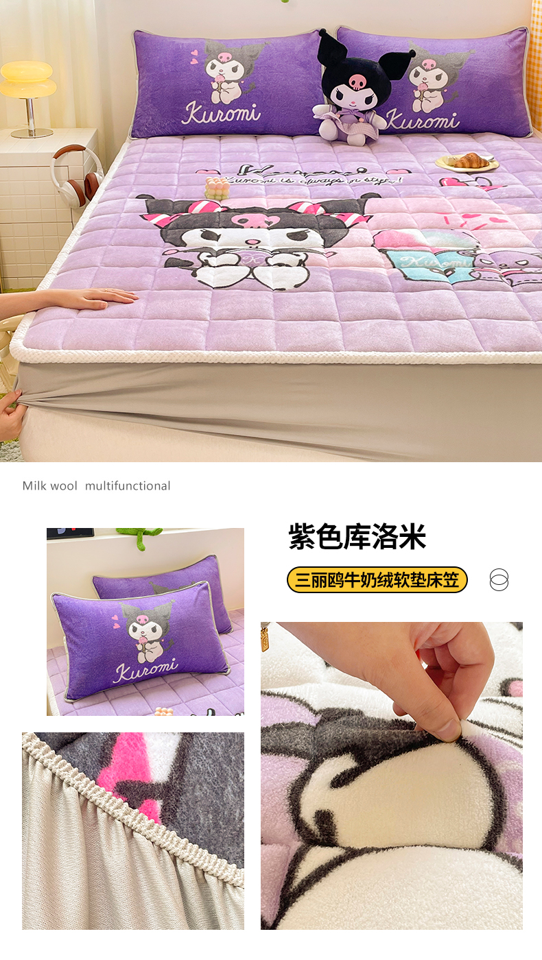 商品名称:(总)米帛家纺 2024新款三丽鸥印花牛奶绒夹棉床笠三件套