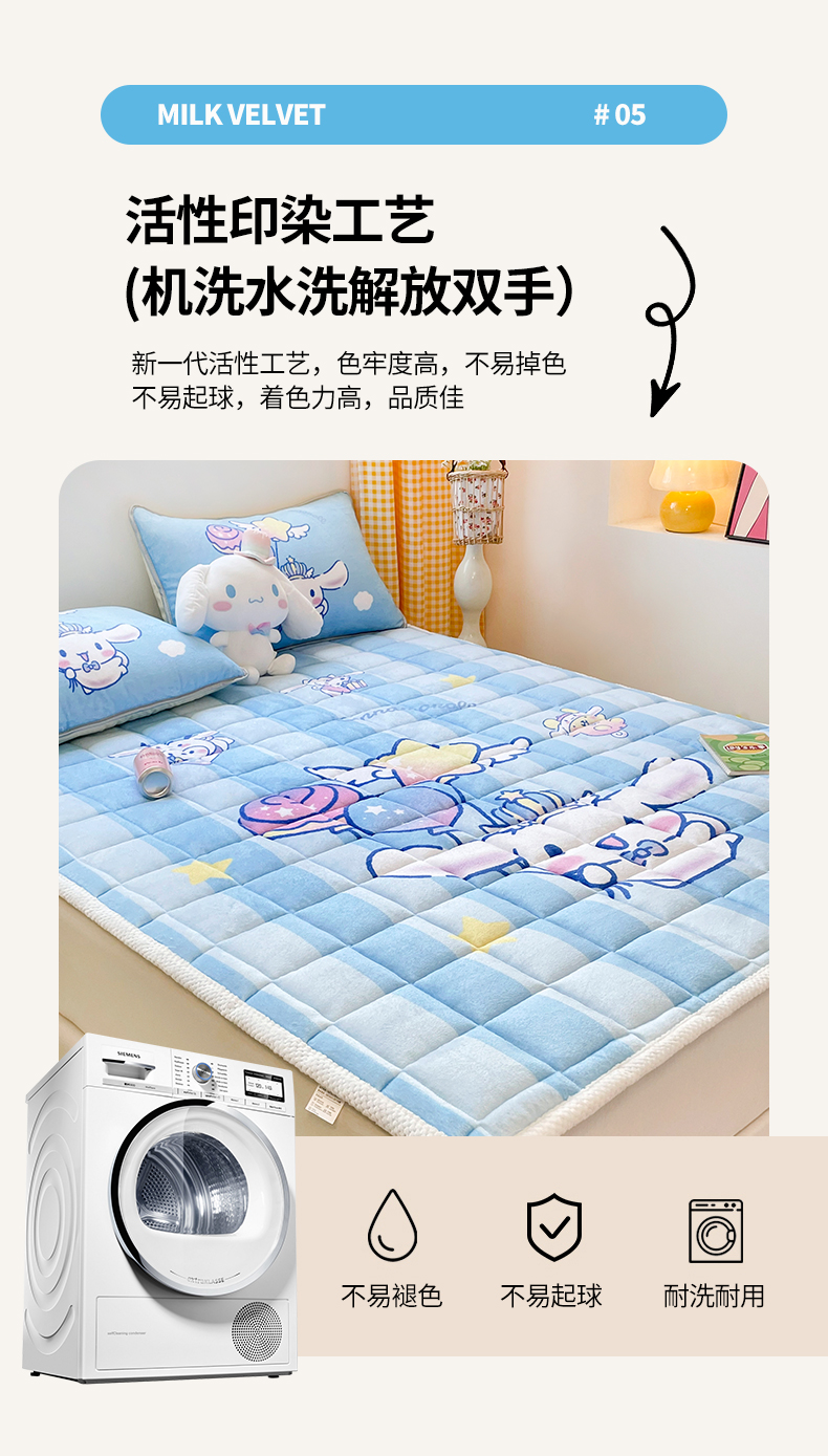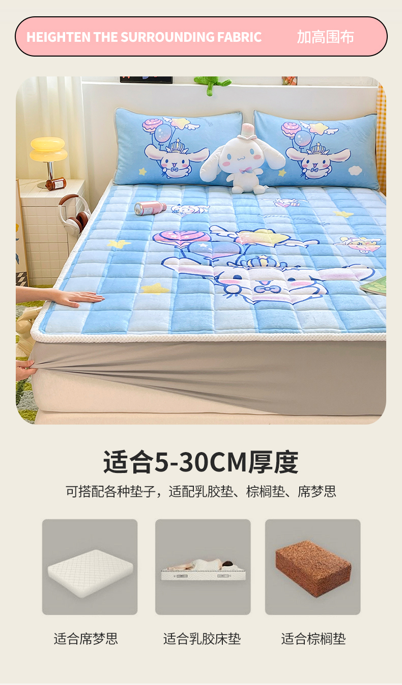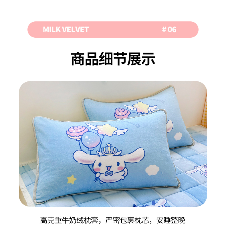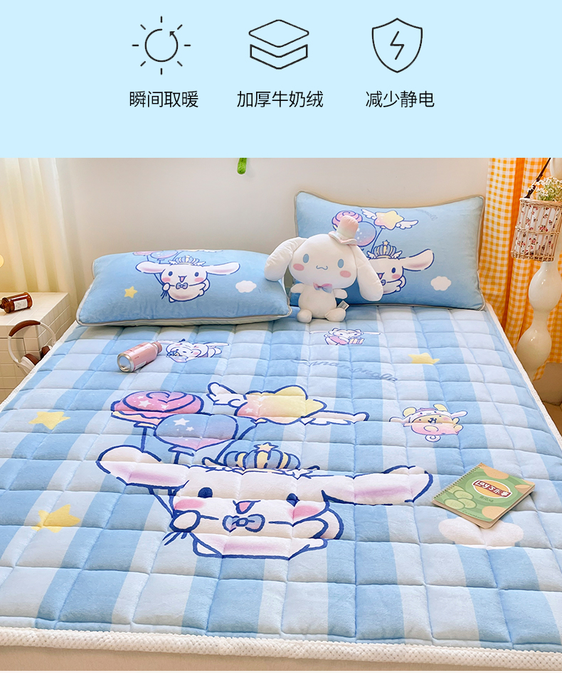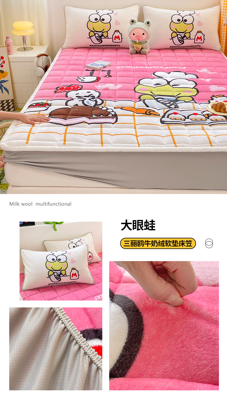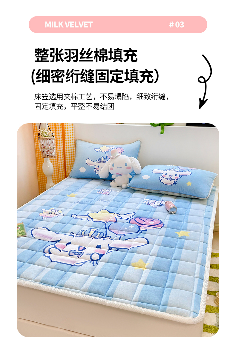 商品名称:(总)米帛家纺 2024新款三丽鸥印花牛奶绒夹棉床笠三件套