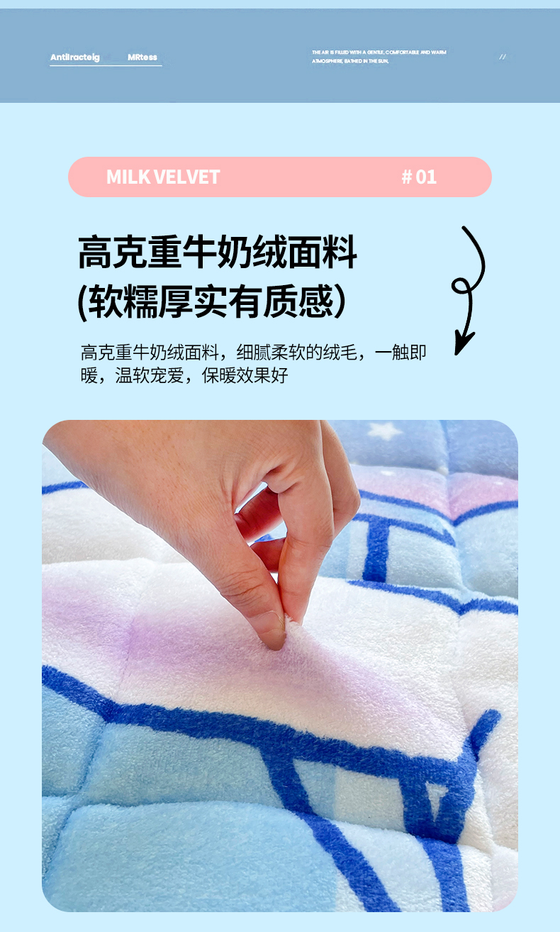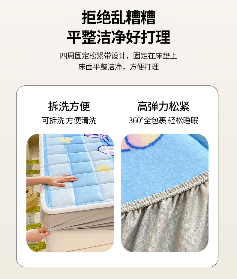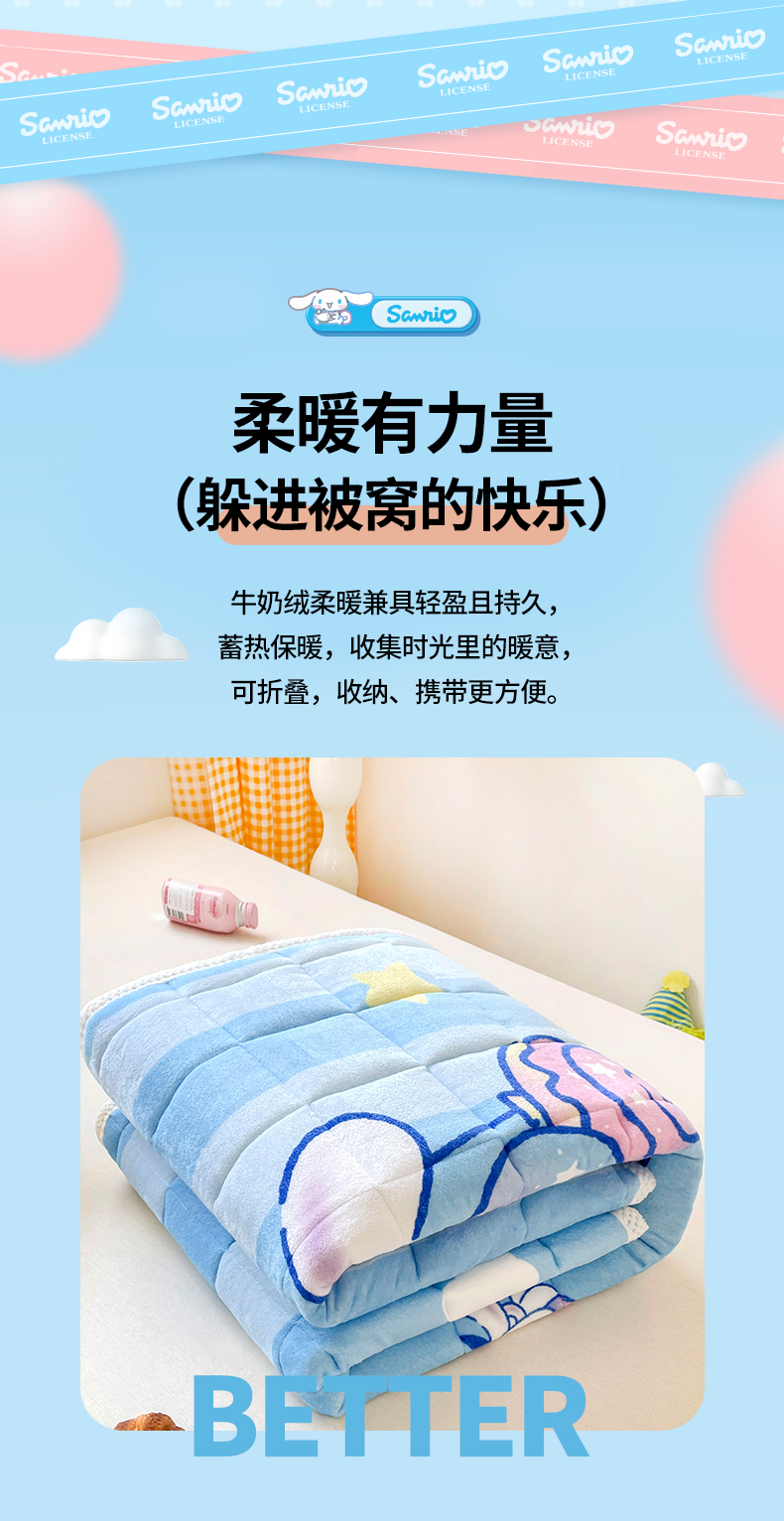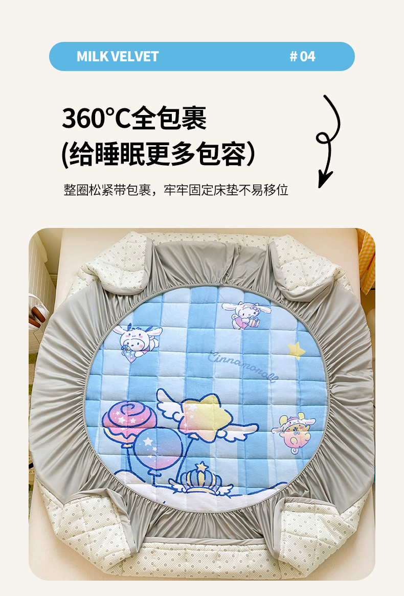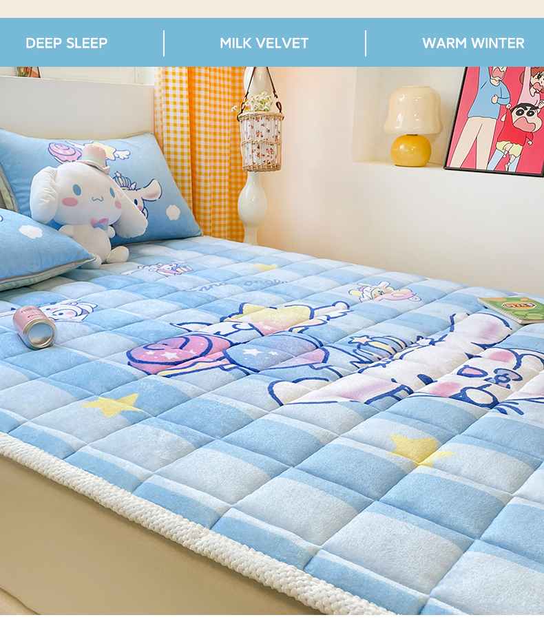 商品名称:(总)米帛家纺 2024新款三丽鸥印花牛奶绒夹棉床笠三件套