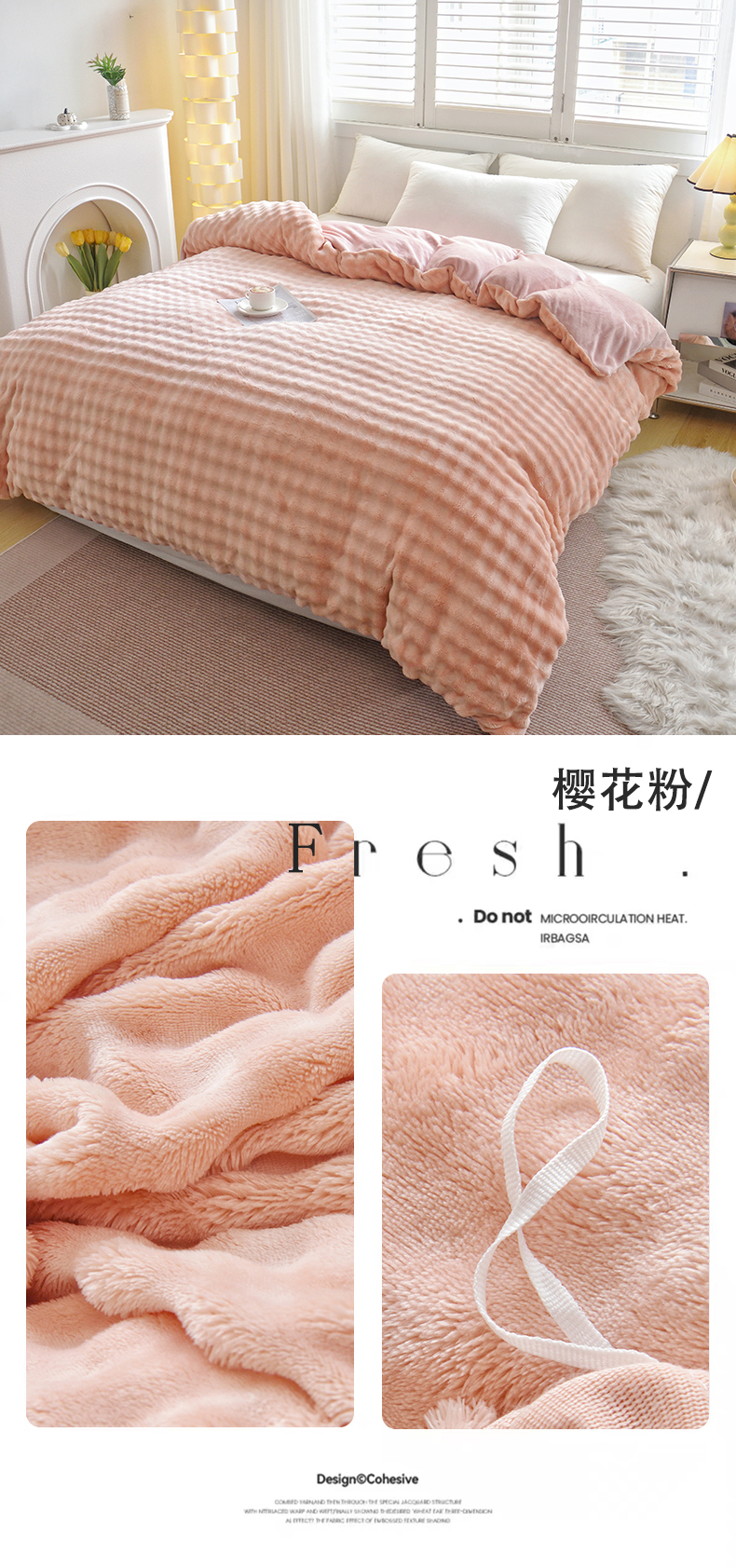 商品名称:启优家纺 2024新款简约兔兔绒活性印染单被套 樱花粉