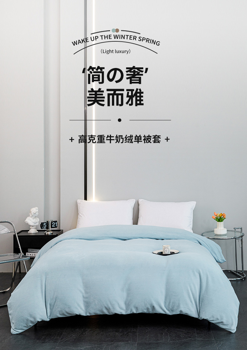 • 91家纺网 家纺一手货源 找家纺 锦罗绣 2024新款230克纯色牛奶绒单被套 水蓝-