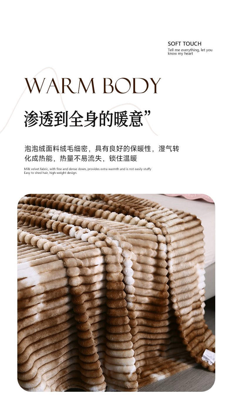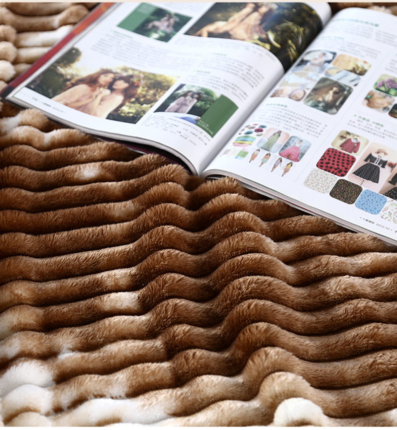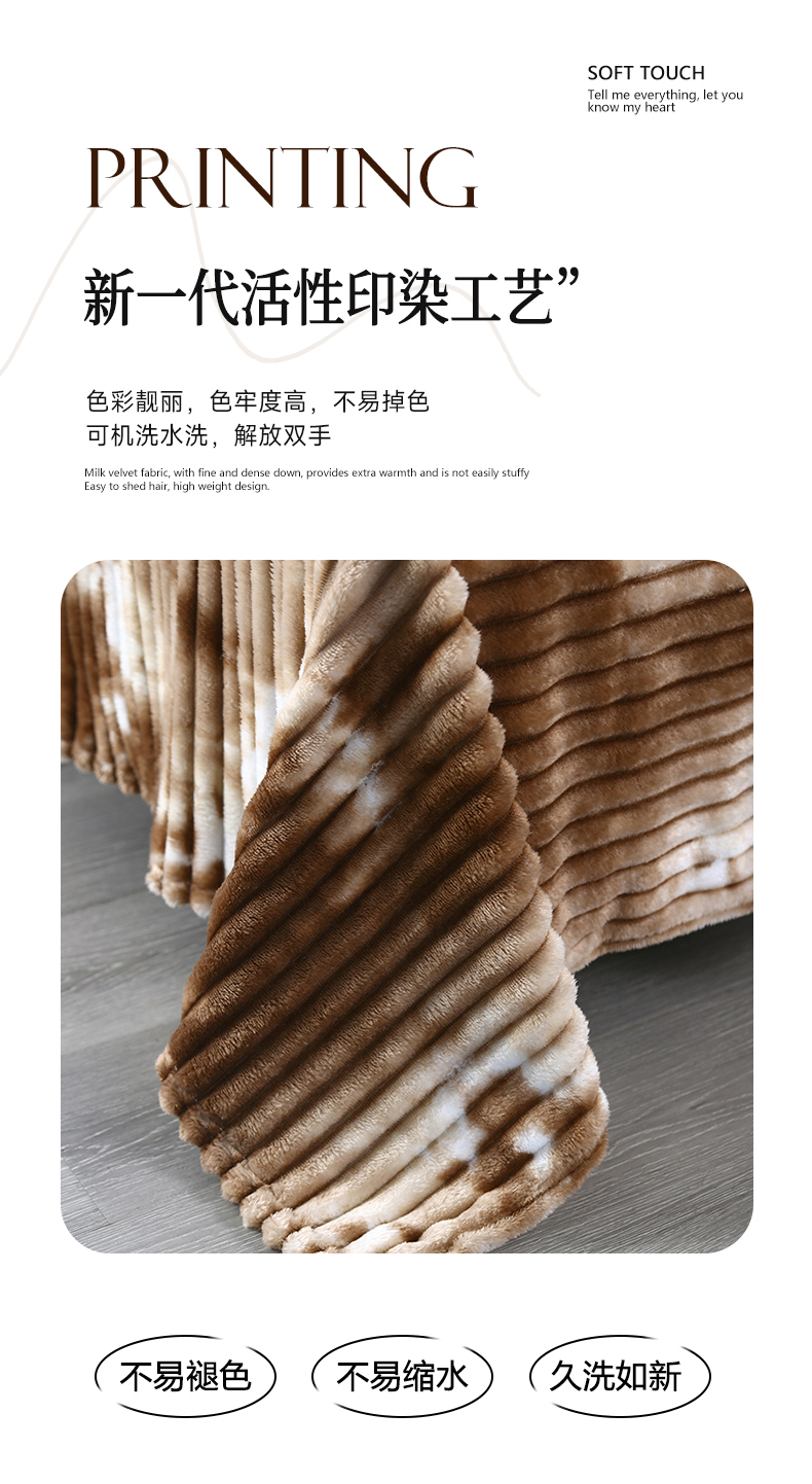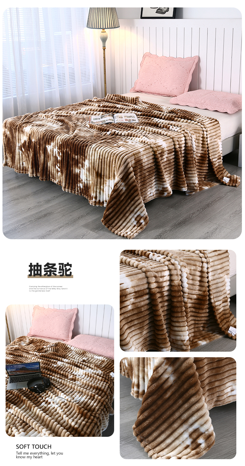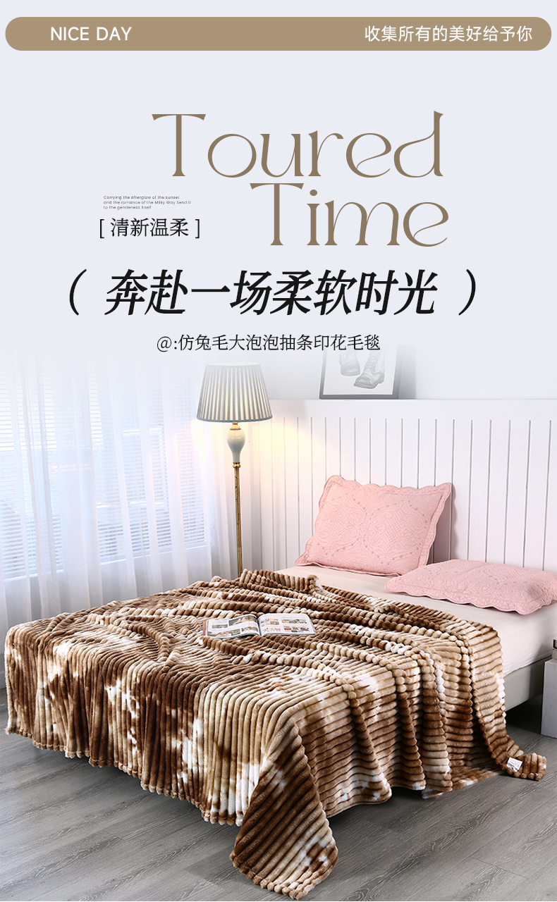 美洲琳 2025新款仿兔毛大泡泡抽条印花毛毯 抽条驼