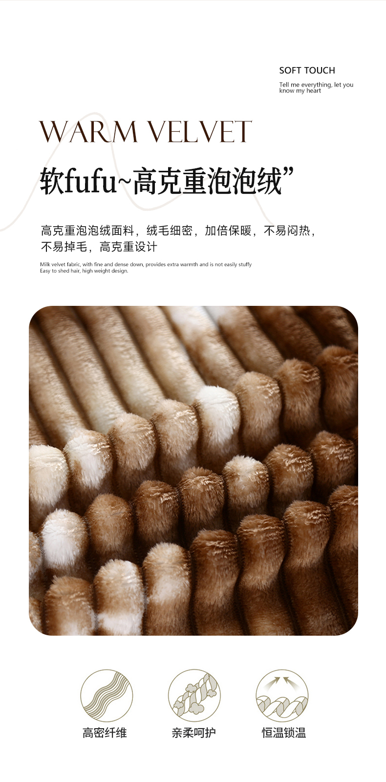 商品名称:美洲琳 2025新款仿兔毛大泡泡抽条印花毛毯 抽条驼