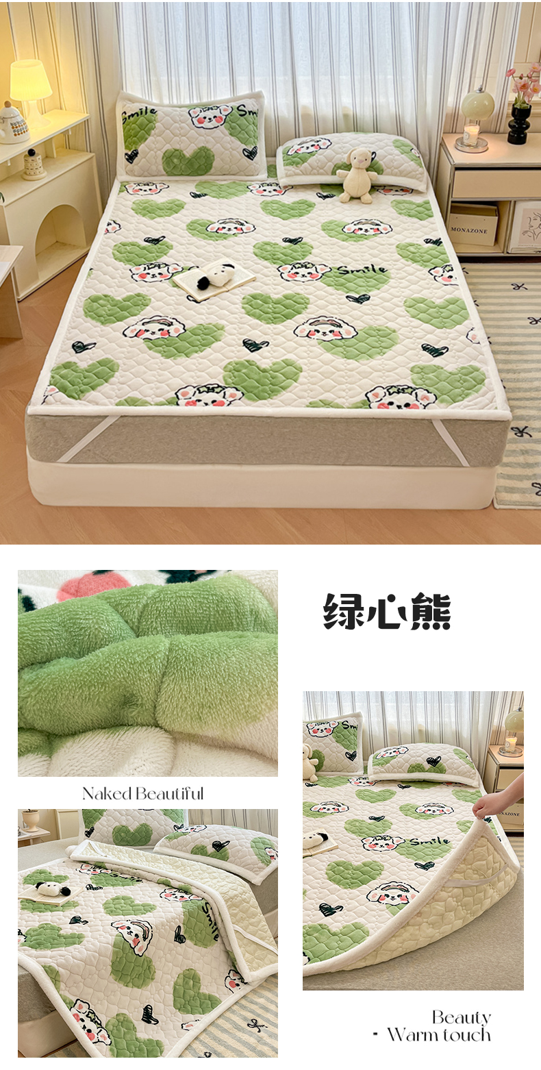当前位置: 91家纺网 > 商品网购 > 床垫/床褥 > 普通床垫 > 启程家纺 2024新款A类印花牛奶绒床垫加厚绒保暖床护垫 绿心熊