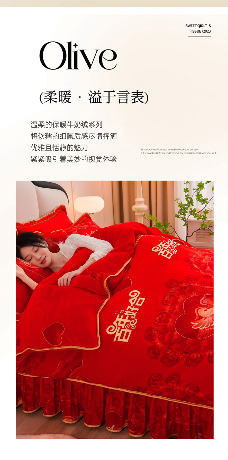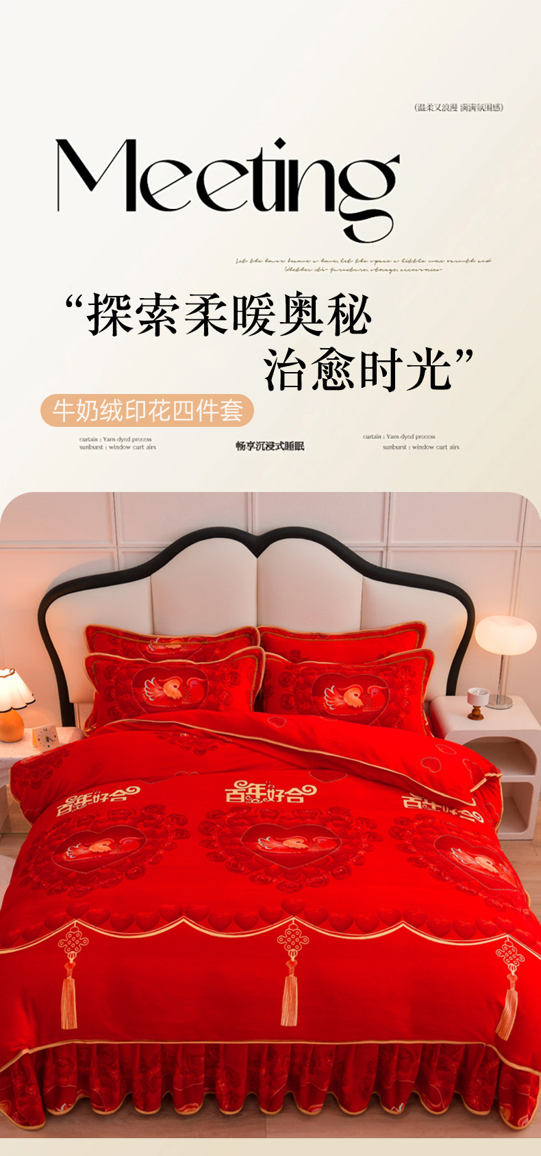 绒耀 2025新款高克重牛奶绒四件套保暖四件套直播爆款电商爆款 百年好合