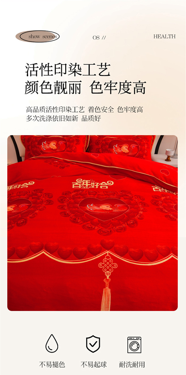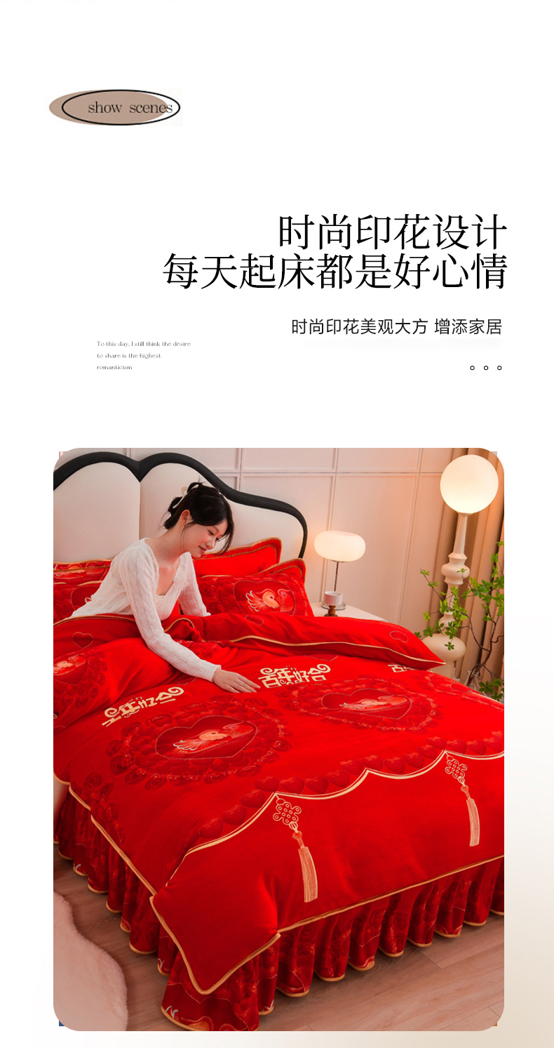 商品名称:绒耀 2025新款高克重牛奶绒四件套保暖四件套直播爆款电商爆款 百年好合