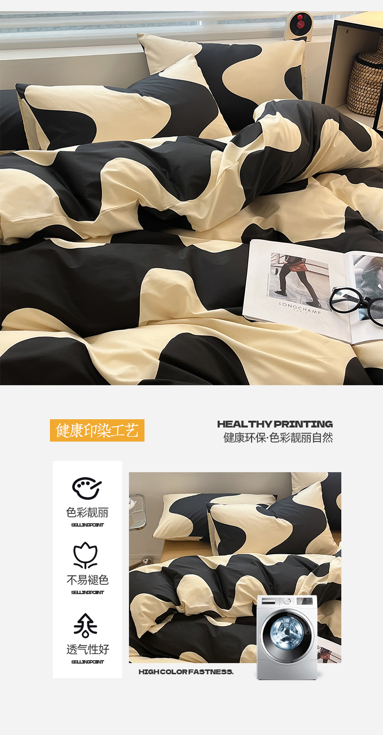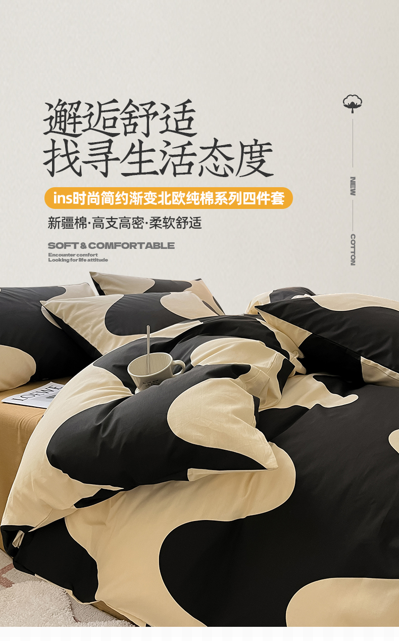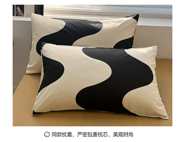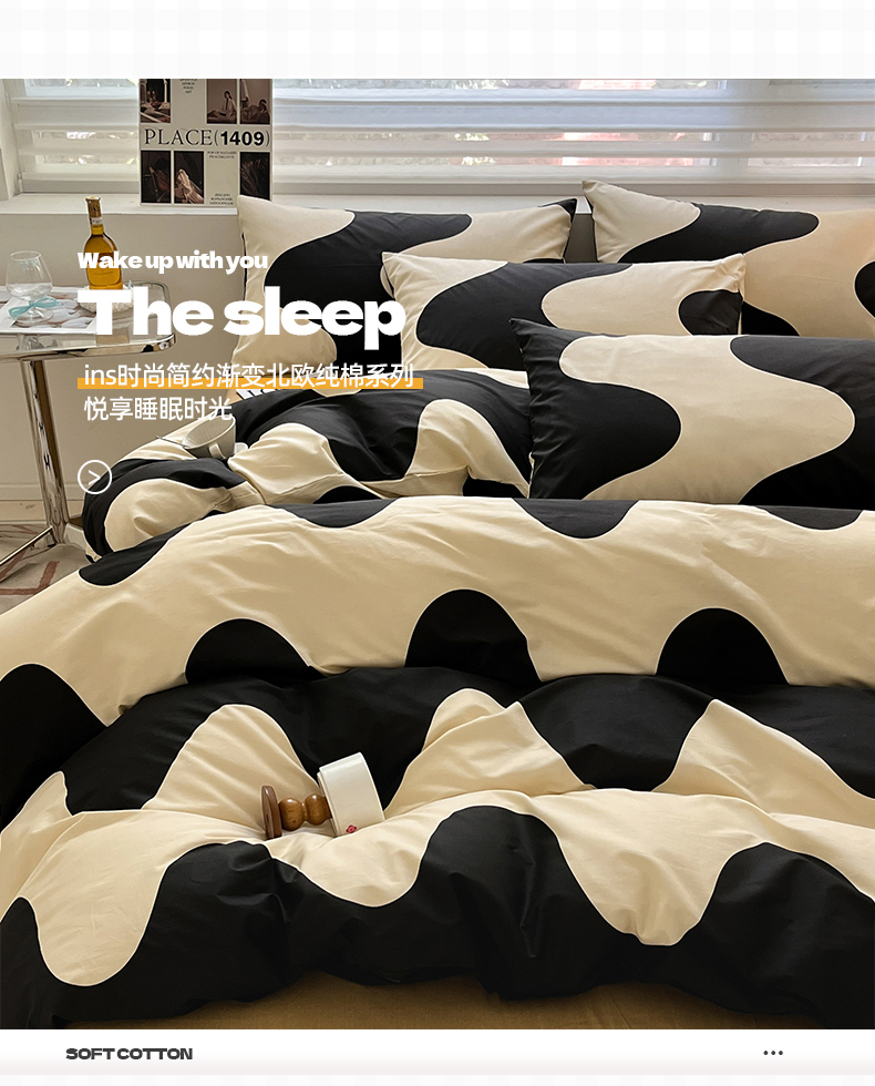 商品名称:2024新款ins时尚简约渐变北欧全棉系列四件套 棉-黑白波浪