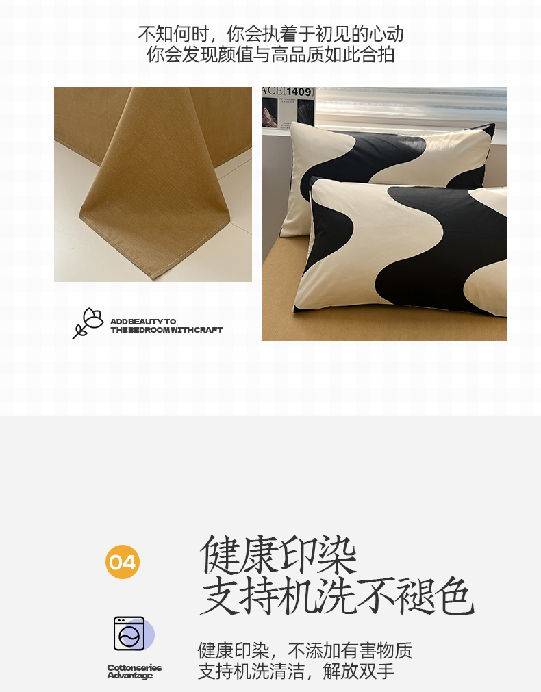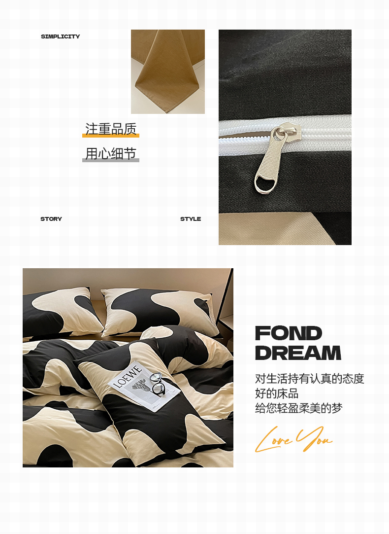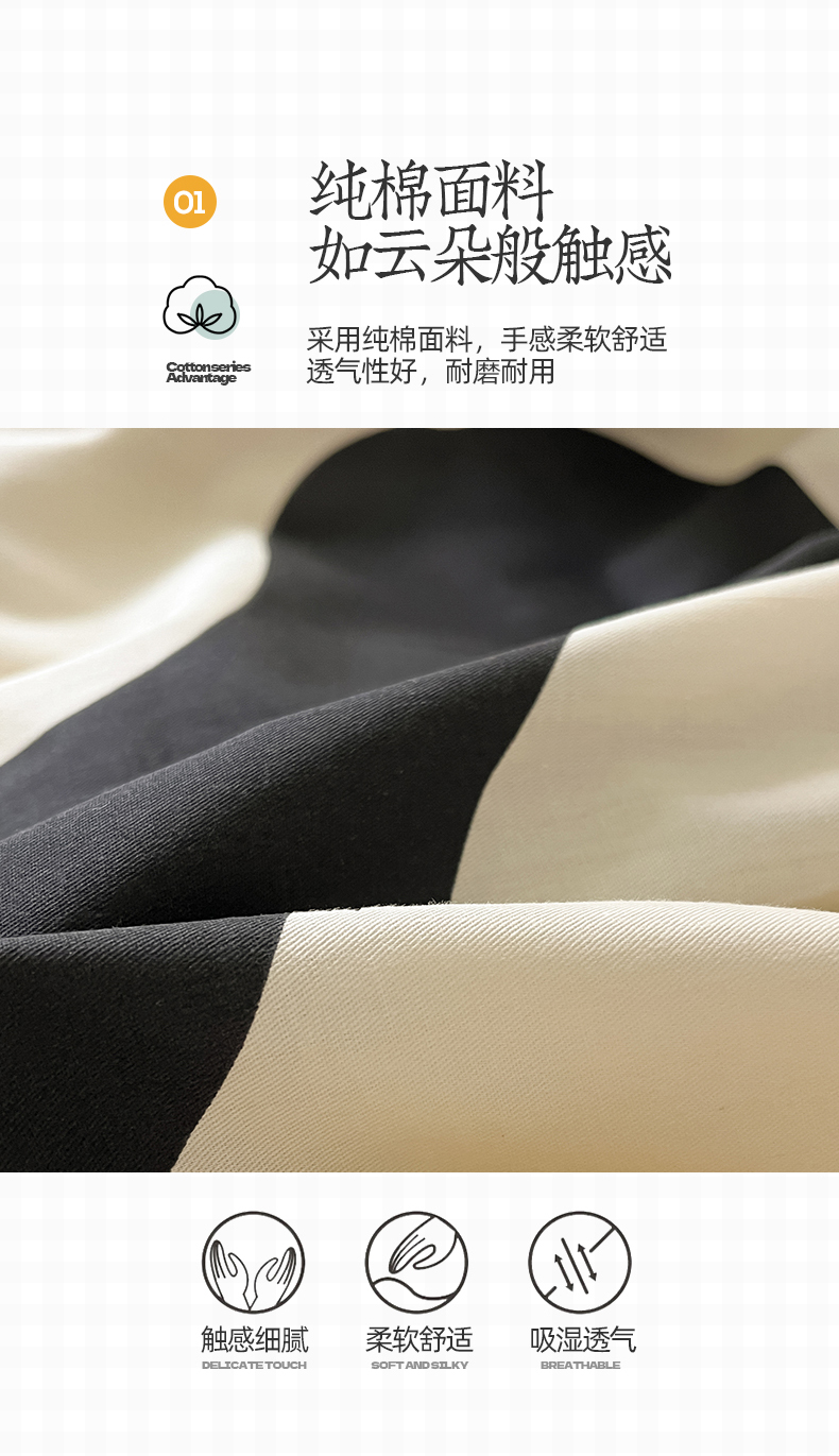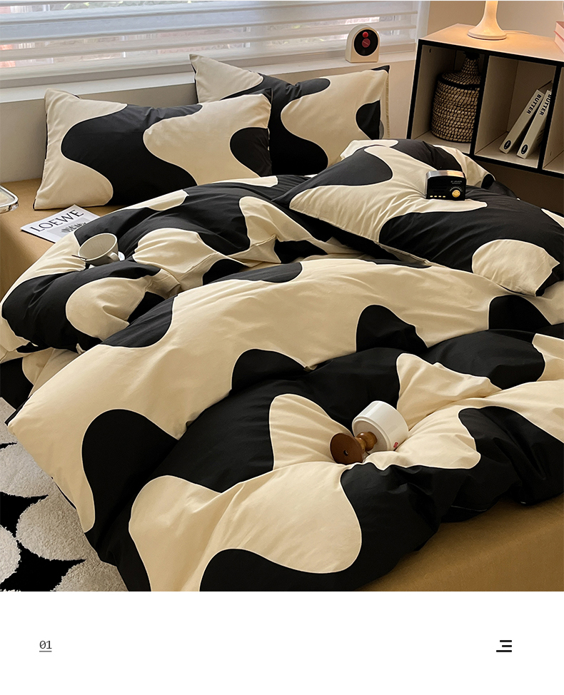 商品名称:2024新款ins时尚简约渐变北欧全棉系列四件套 棉-黑白波浪