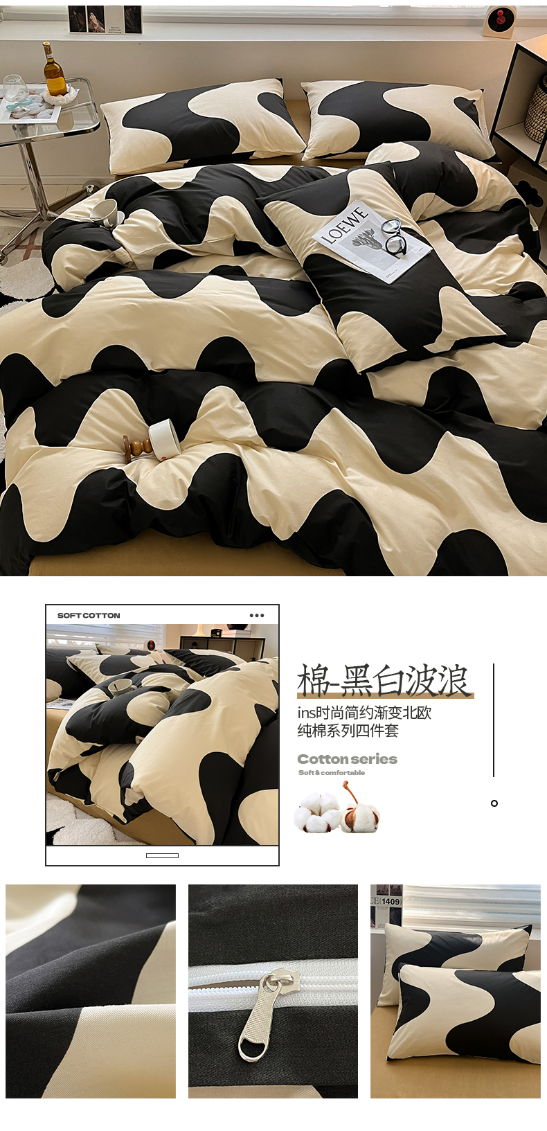 2024新款ins时尚简约渐变北欧全棉系列四件套 棉-黑白波浪